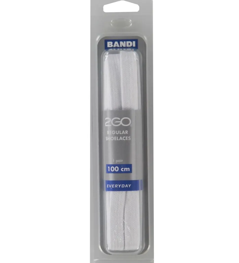 2GO snørebåndene i hvid er 100 cm lange og kan snøre 5-7 par huller. Snørebåndene har en standart tykkelse – perfekt til almindelig hverdagsbrug- og de er sikret med brede plastikender så de ikke flosser.