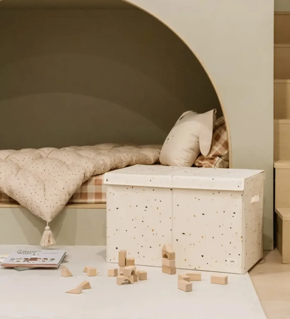 Flot 3 Sprouts opbevaringskasse i cremehvid med et forskelligfarvet terrazzoprint.