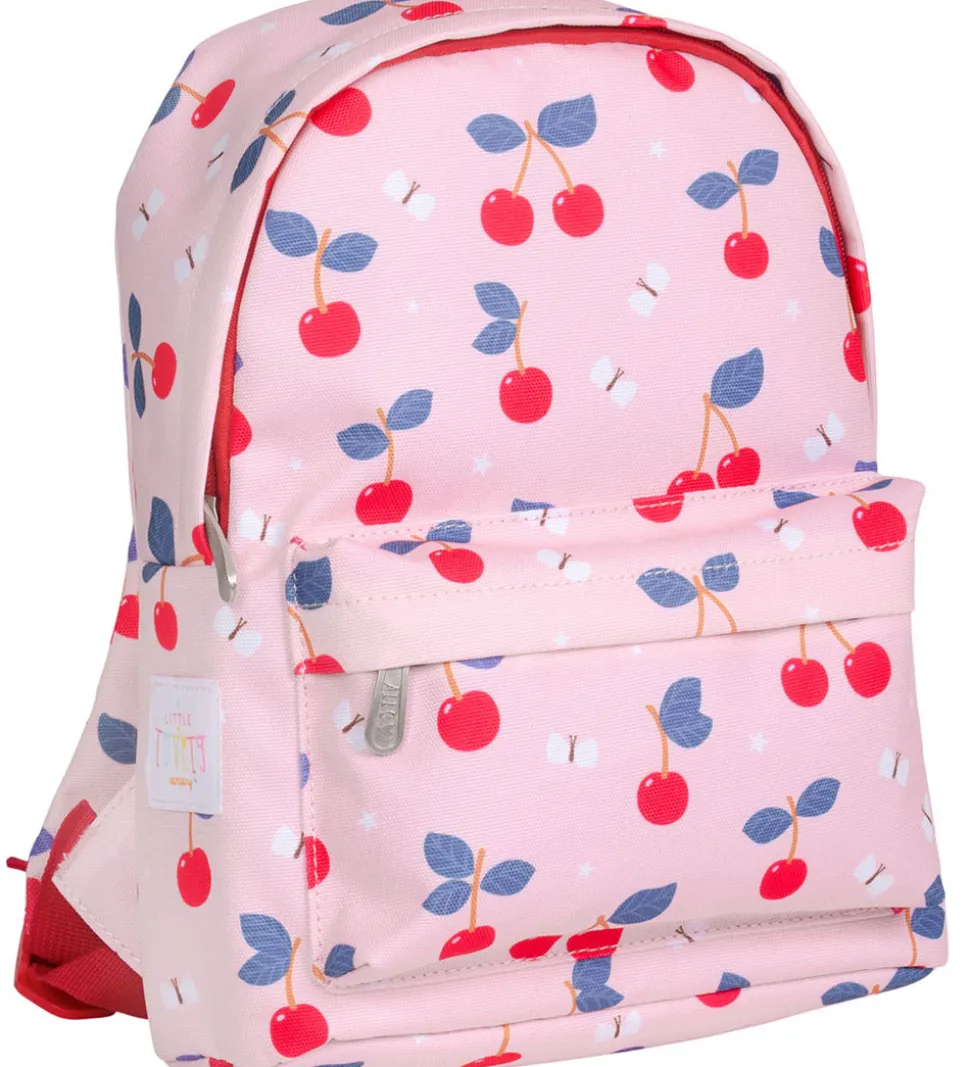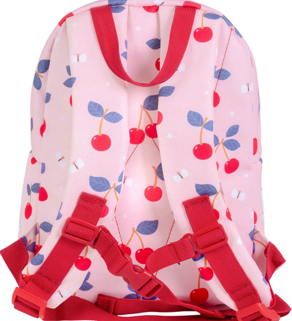 Sød A Little Lovely Company børnehavetaske i rosa med kirsebær- og sommerfugleprint.