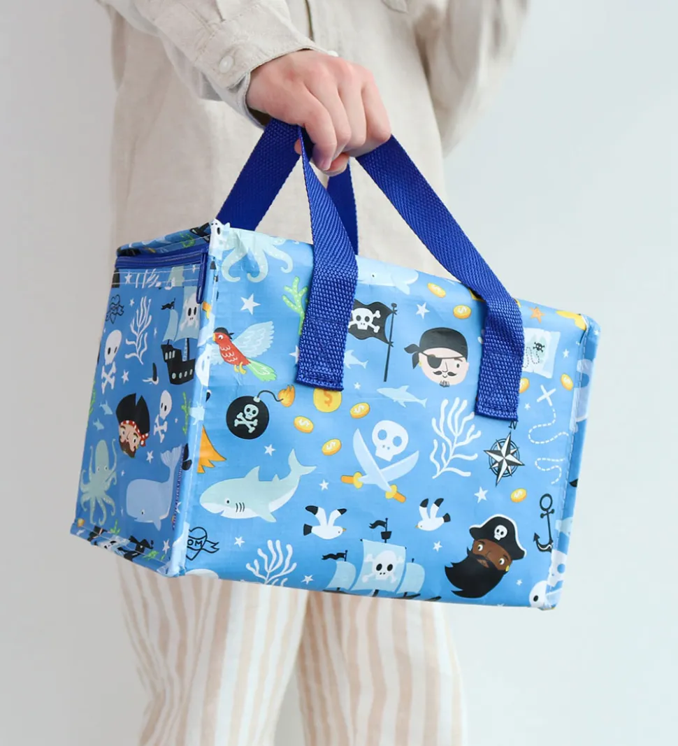 Smart A Little Lovely Company køletaske i blå med piratprint i mange farver. Køletasken har blå håndtag og lynlås.