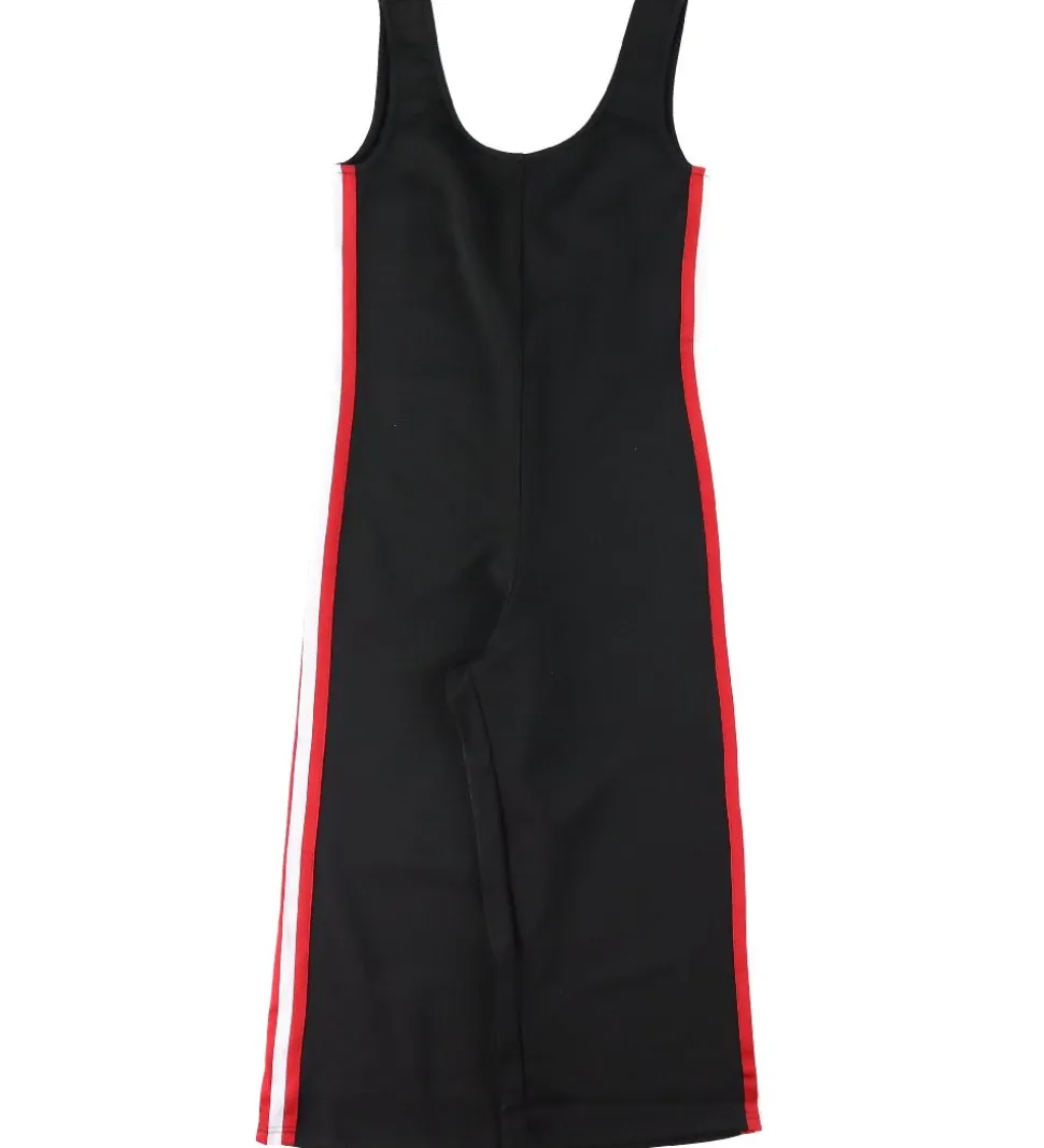 Fed Add to Bag buksedragt i sort med brede, røde og hvide striber ned ad siderne.