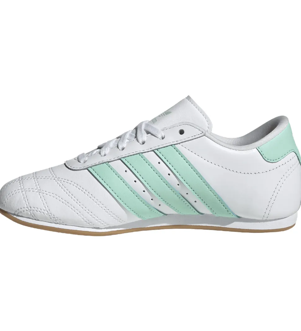 Smarte adidas Originals indendørssko i hvidt imiteret skind og skind med lysegrønne logostriber på siderne samt logo på pløsen og hælen.