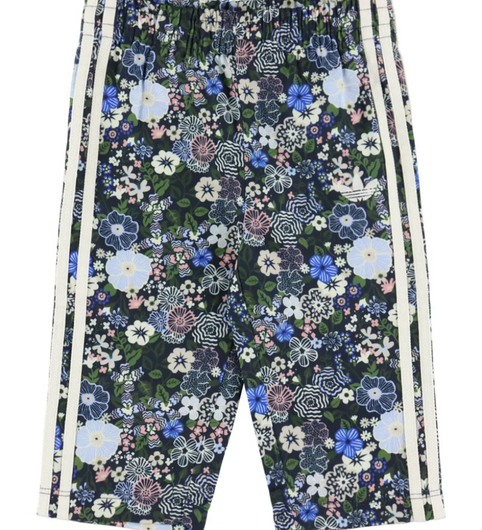 Flot adidas Originals træningssæt med et blomsterprint i blå, grønne, rosa og hvide nuancer. Træningssættet har de klassiske adidas striber ned langs ærmerne og benene, hvilket giver et stilfuldt look. Cardiganen har lange ærmer og åbnes fortil med en gennemgående lynlås med hagebeskytter. Den har ribkanter ved håndleddene, der sikrer en god pasform. Bukserne har en behagelig elastik i taljen, som sikrer en god justering samt samme flotte mønster, der matcher overdelen perfekt.