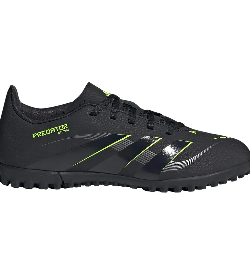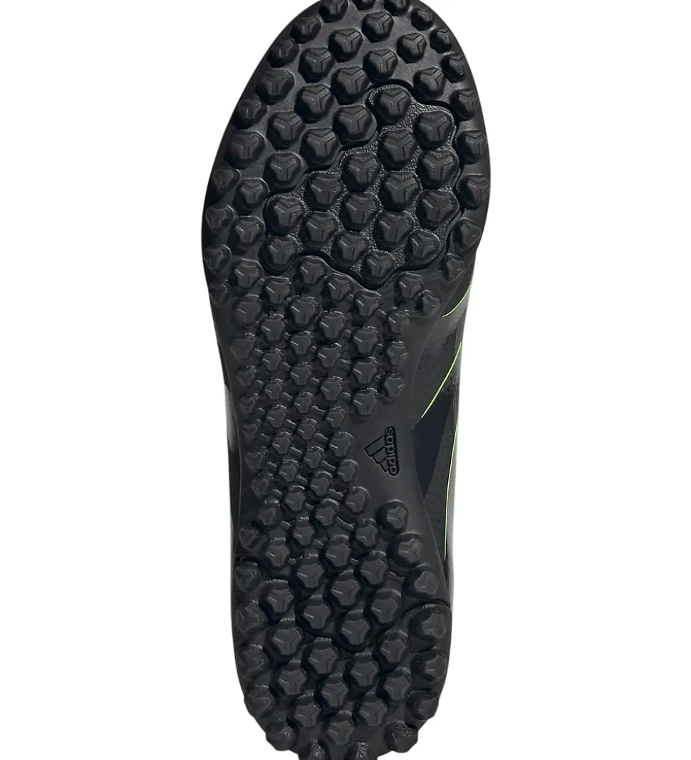 Flotte adidas Performance fodboldstøvler i sort med detaljer og logoer i gul, grå og sort.