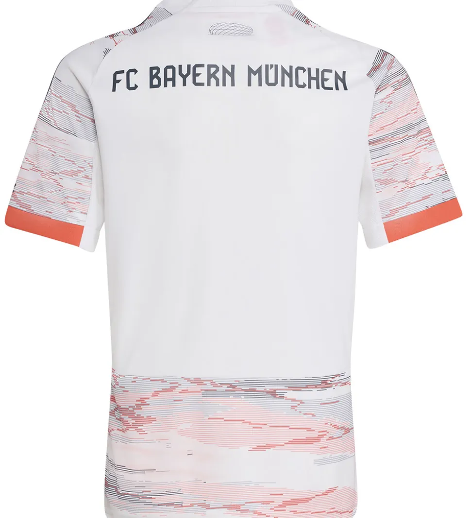 Flot adidas Performance fodboldtrøje i hvid med et unikt gråt og orange mønster, samt et FC Bayern München logo broderet fortil.