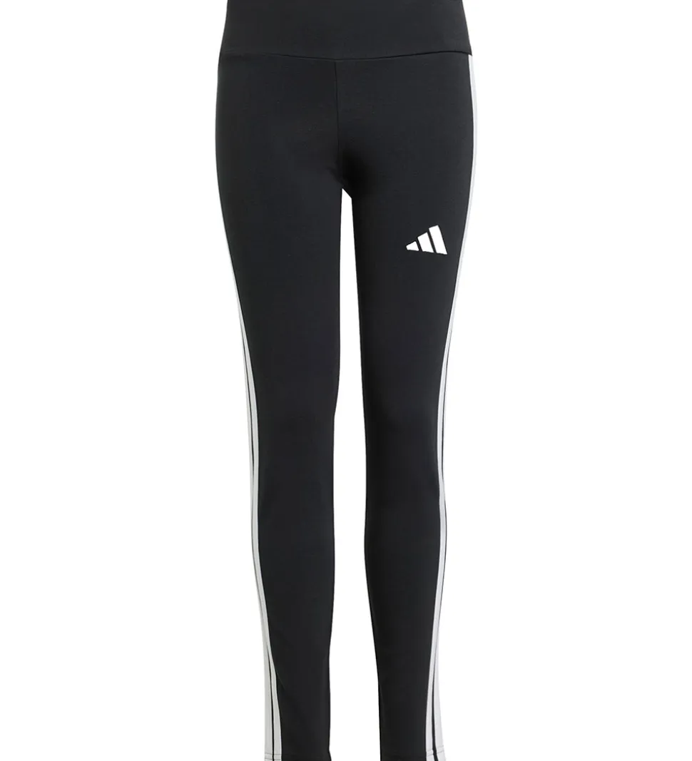 Flotte adidas Performance leggings i sort, og ned ad siderne er der tre hvide logostriber.