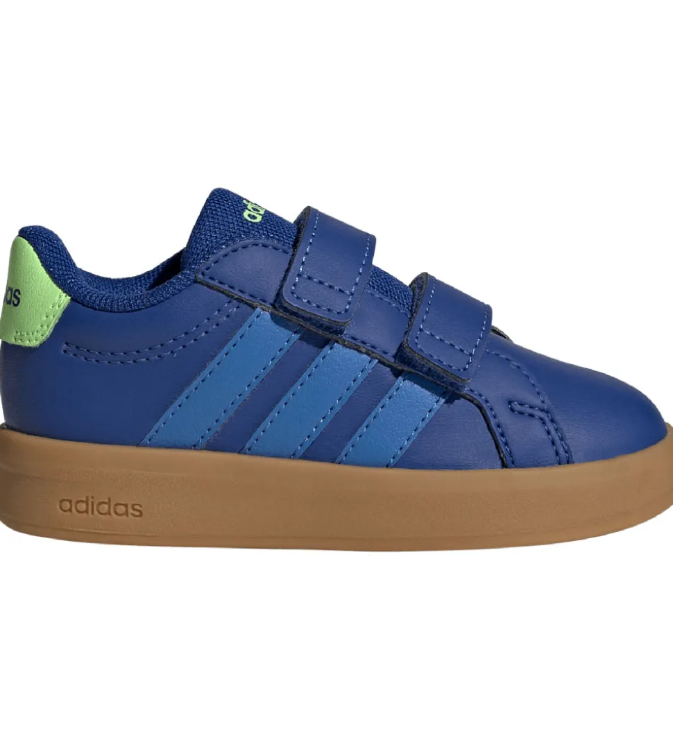 Elegante adidas Performance sko i blåt, imiteret skind med blå logostriber på både inder- og ydersiden.