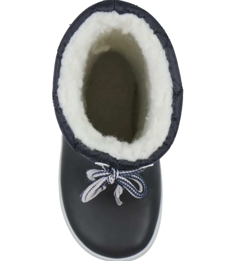 Lækre Aigle termostøvler i Giboulee-modellen i navy med en hvid stribe langs sålerne.