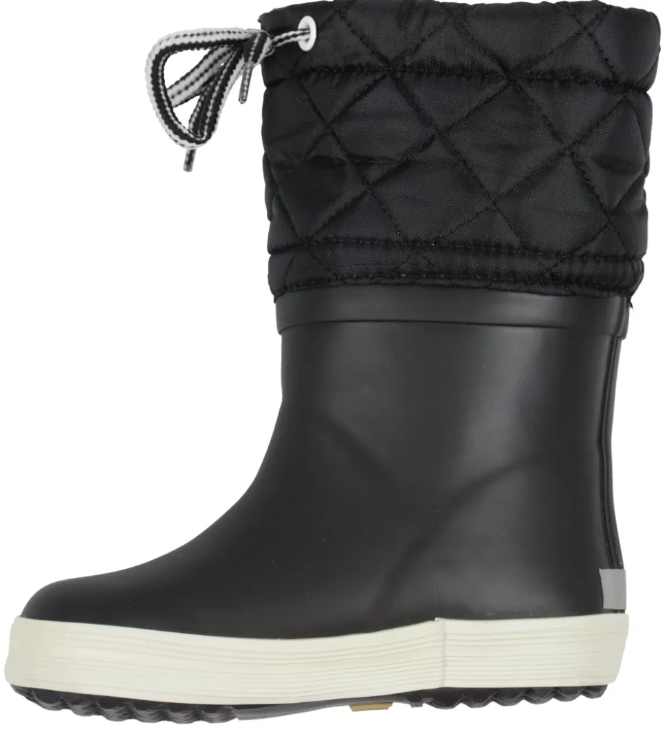 Lækre Aigle termostøvler i Giboulee-modellen i sort med en cremefarvet stribe langs sålerne.