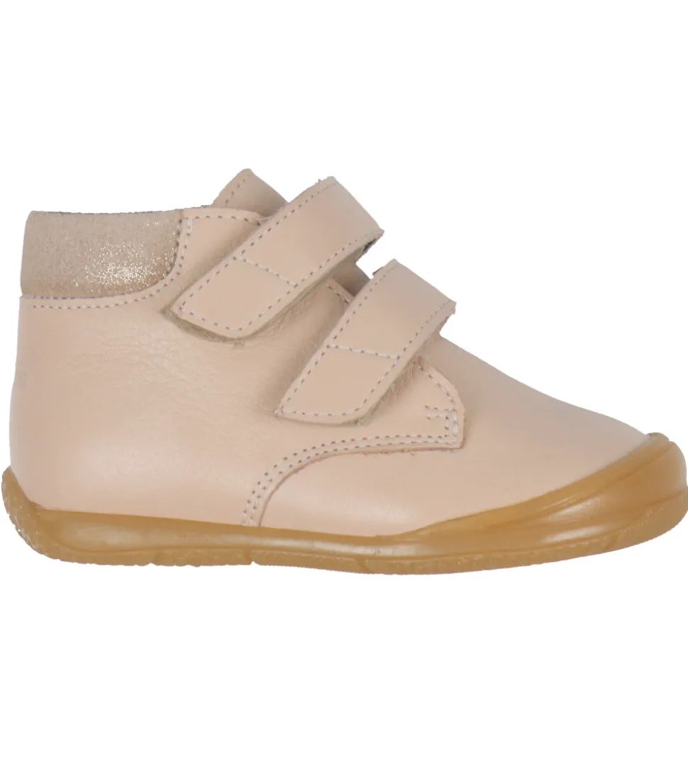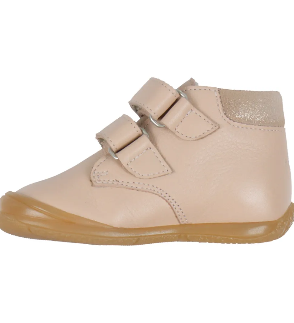 Flotte Angulus begyndersko i lys rosa læder med en glimmer del ved hælen i toppen. Perfekt til aktive små eventyrere.