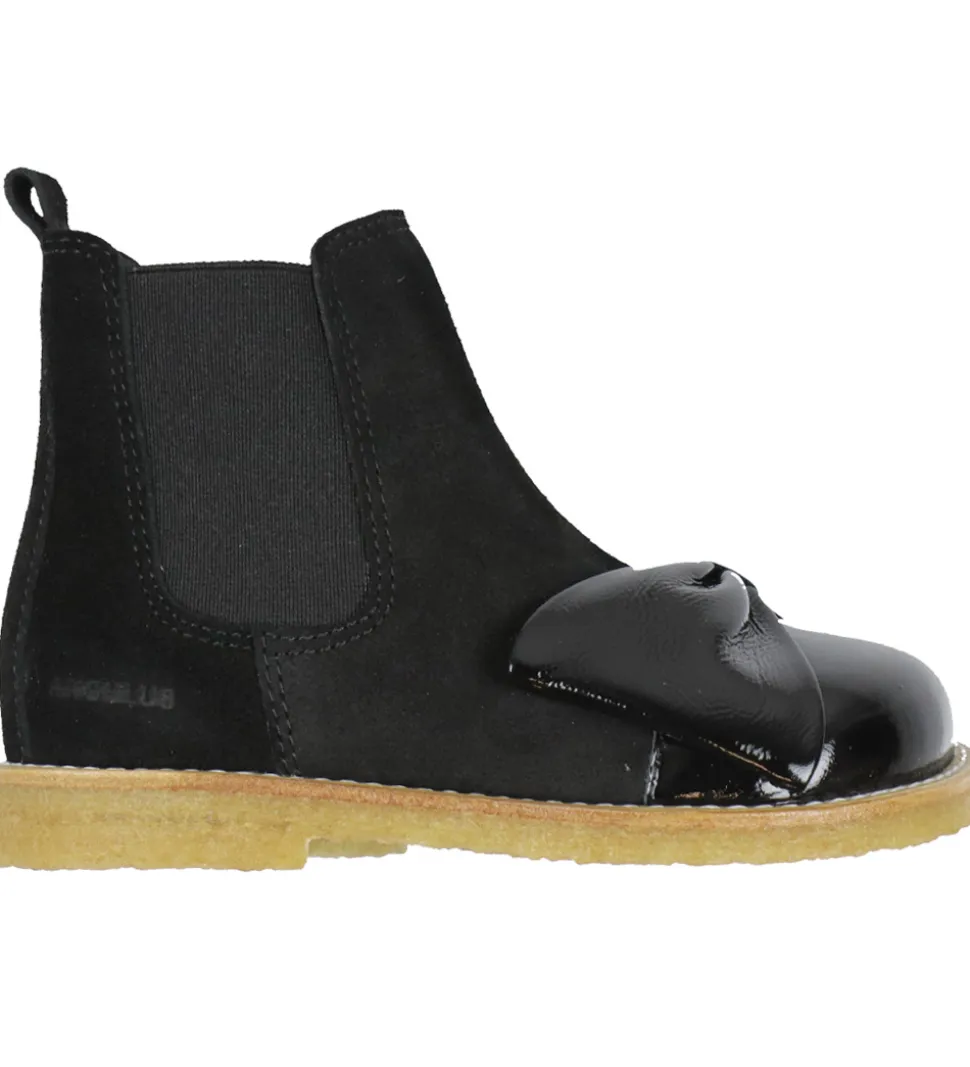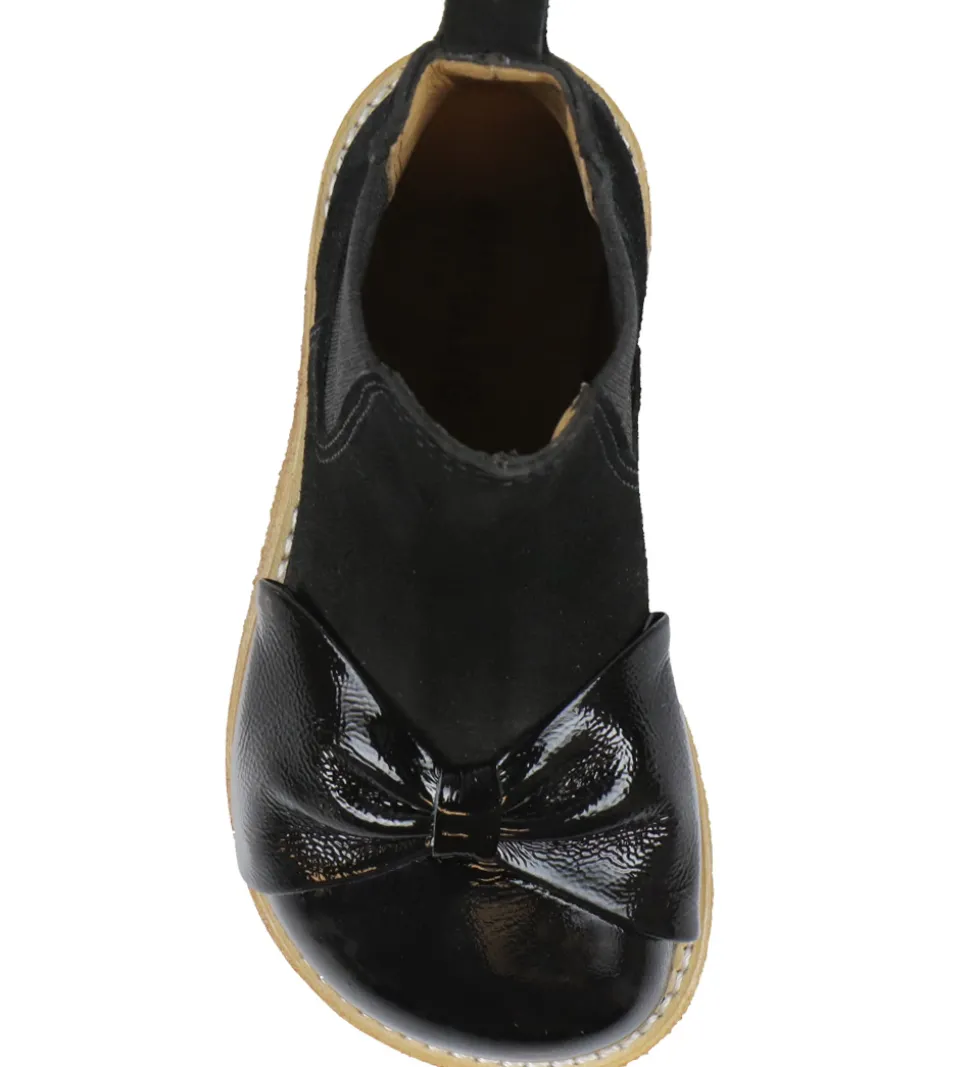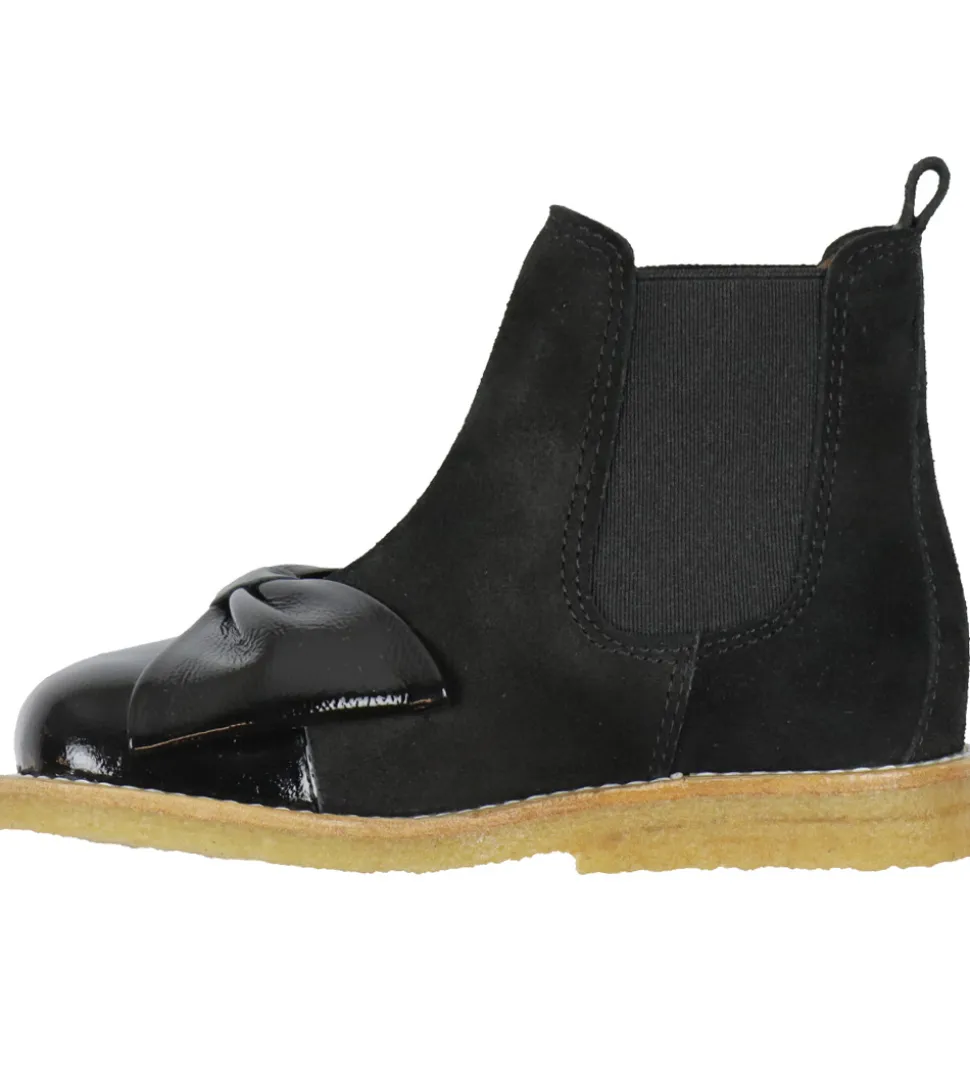 Flotte Angulus støvler i sort ruskind med en elegant sløjfe og en snude med en blank finish, der giver et eksklusivt look.