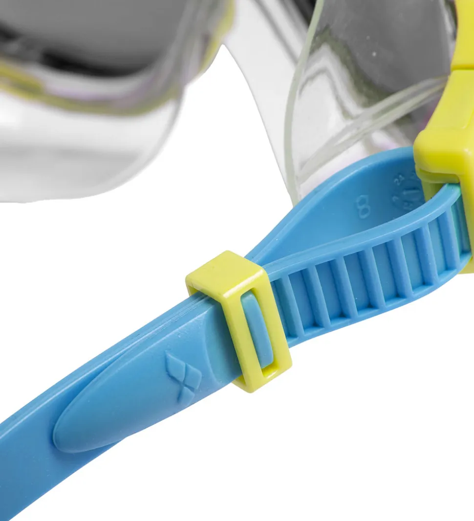 Arena svømmebrillerne justeres i siderne med praktiske plastikklemmer, så den perfekte komfort og pasform findes. Dykkerbrillerne består af ét stort brilleglas, så man får ekstra godt udsyn, og de har en reflekterende overflade i grå nuancer. Dykkerbrillerne slutter tæt omkring øjnene, så der ikke kommer vand ind under vandaktiviteterne. Arena har udviklet en teknologi, som gør, at svømmebrillerne ikke kommer til at dugge indvendigt, når man svømmer.