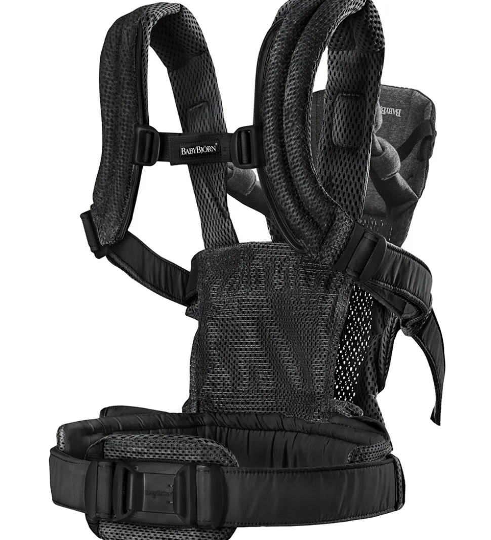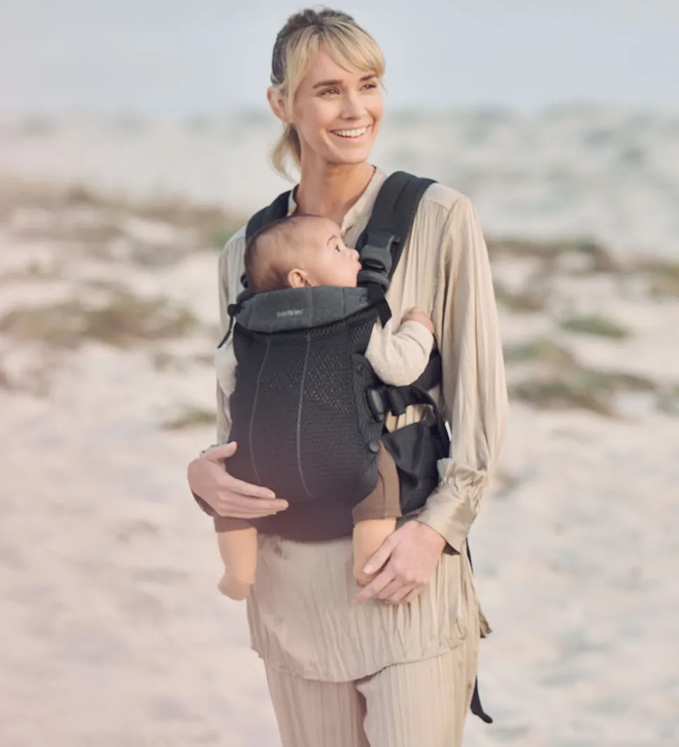 Praktisk BabyBjörn bæresele i meleret sort mesh.