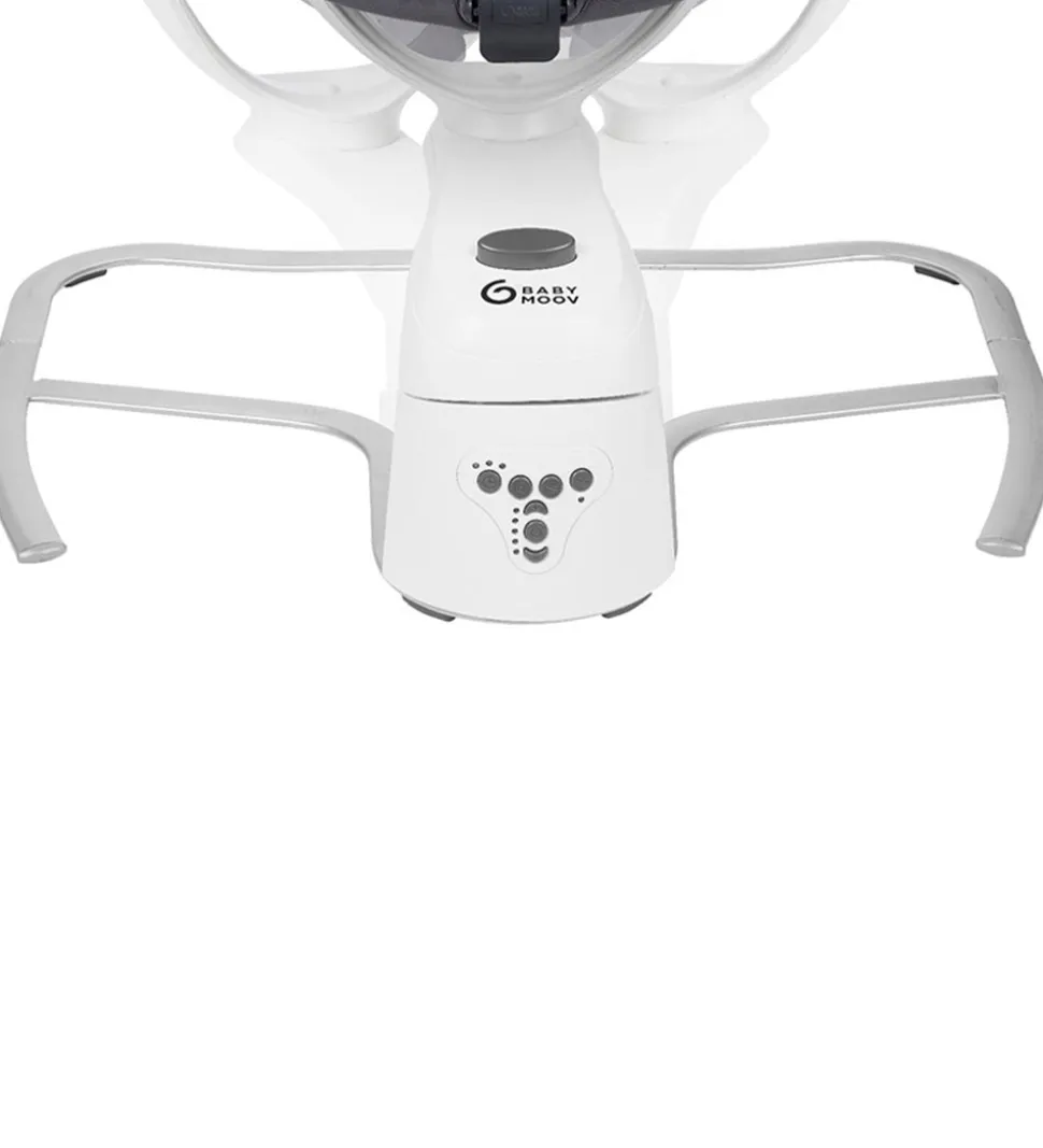 Smart Babymoov skråstol i modellen Swoon Motion Electric 360° i et gråt og hvidt farvetema.