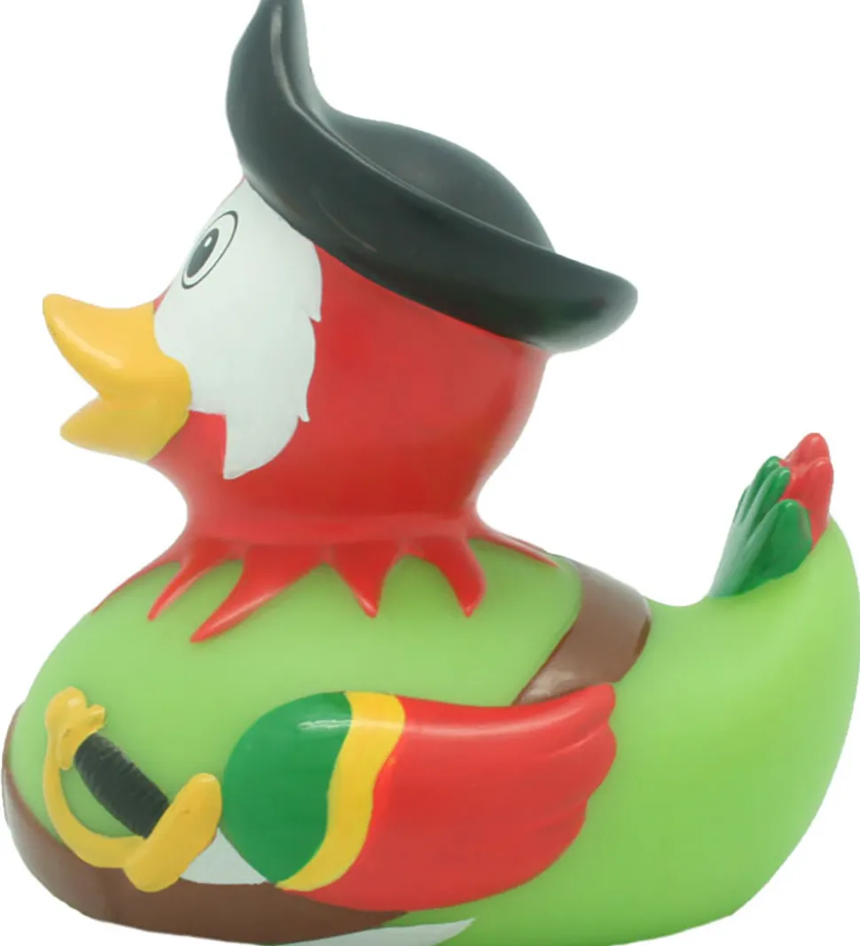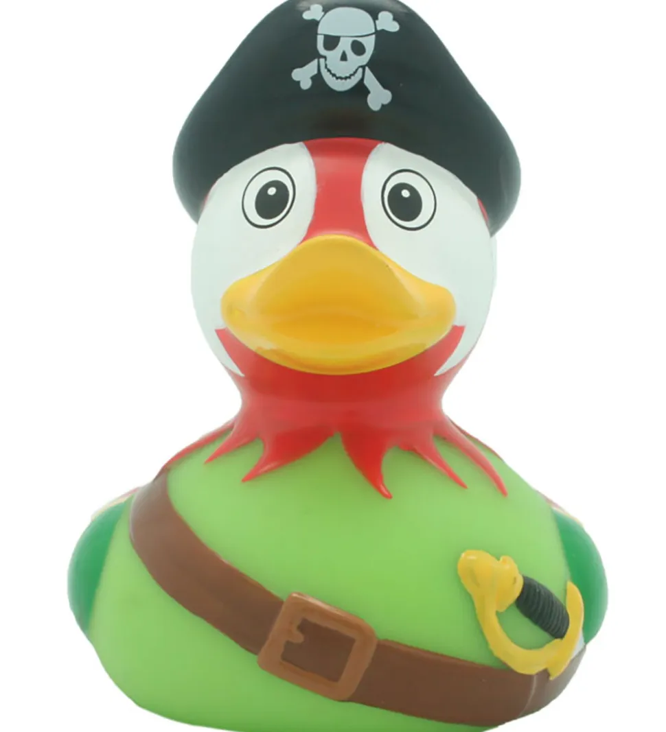 Smart badeand som ligner en farverig pirat.