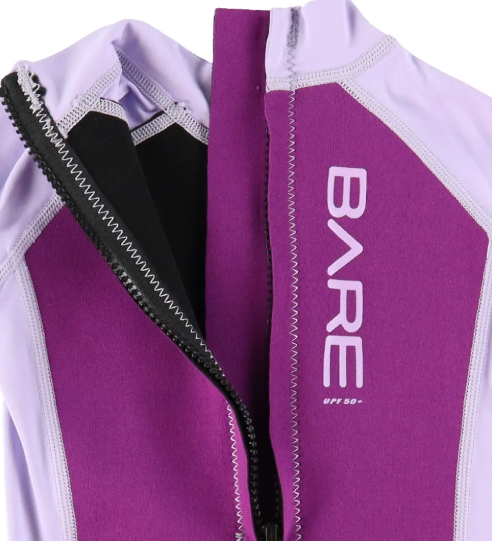 Bare våddragten har korte ærmer og ben. Den åbnes i ryggen med en kraftig lynlås der går nedad ryggen. Dragten er lavet af 1 mm neopren med opdrift, som hjælper barnet til at holde sig flydende i vandet, og den holder kroppen varm i lang tid.
