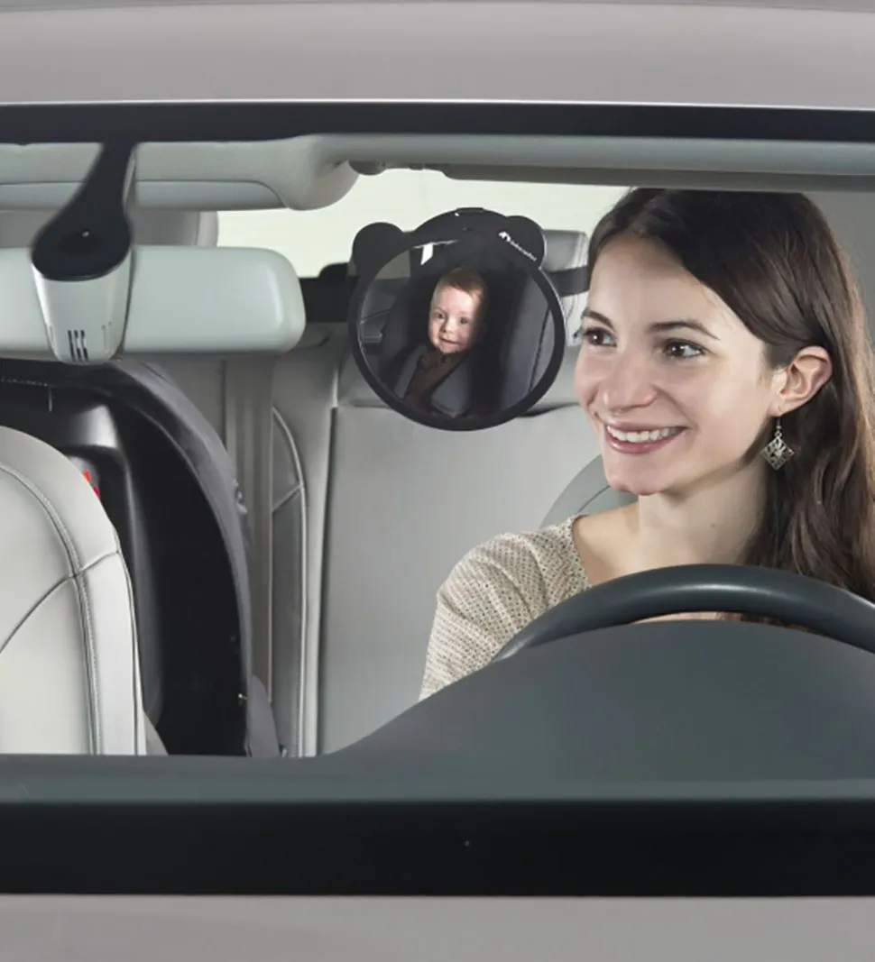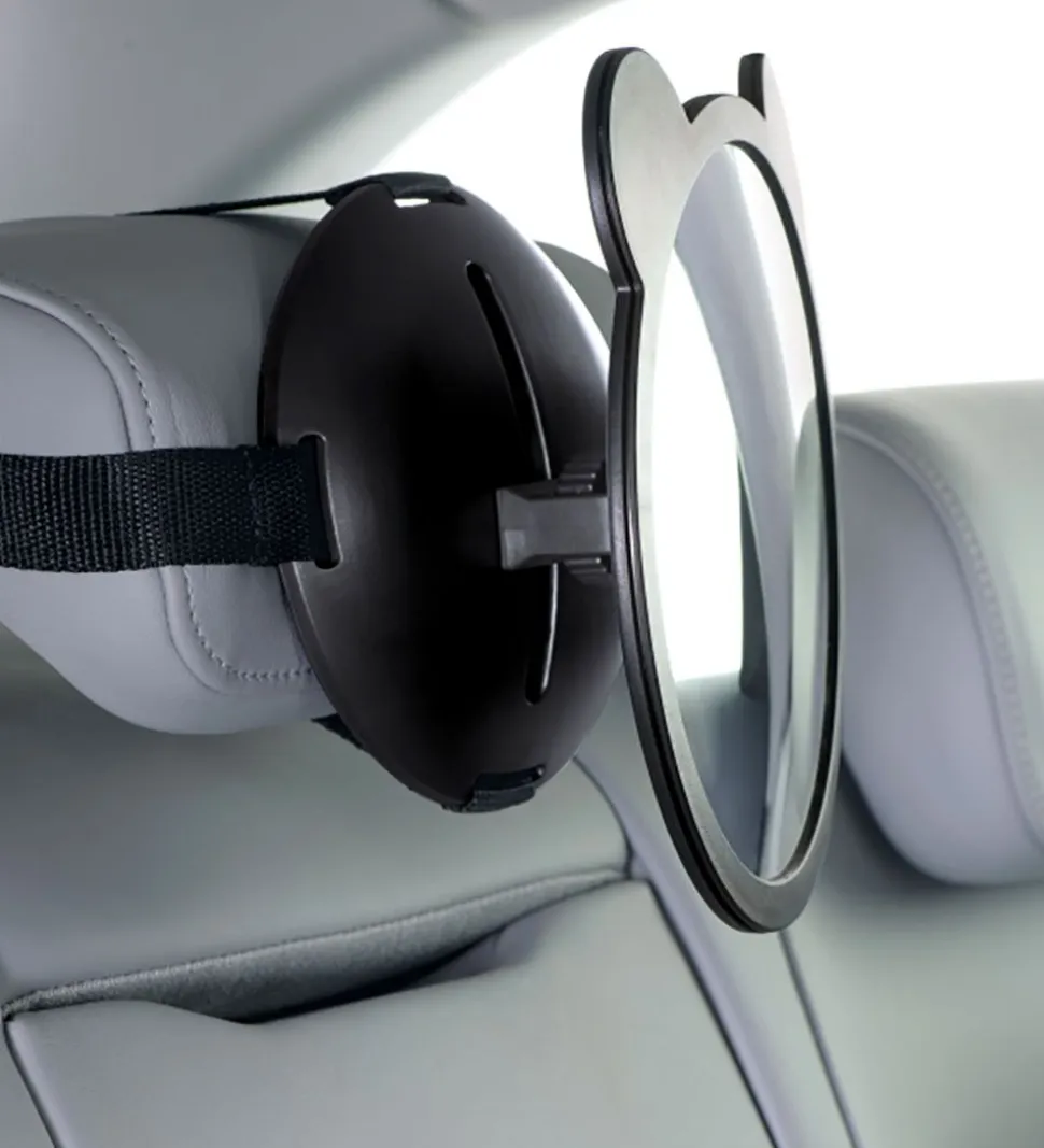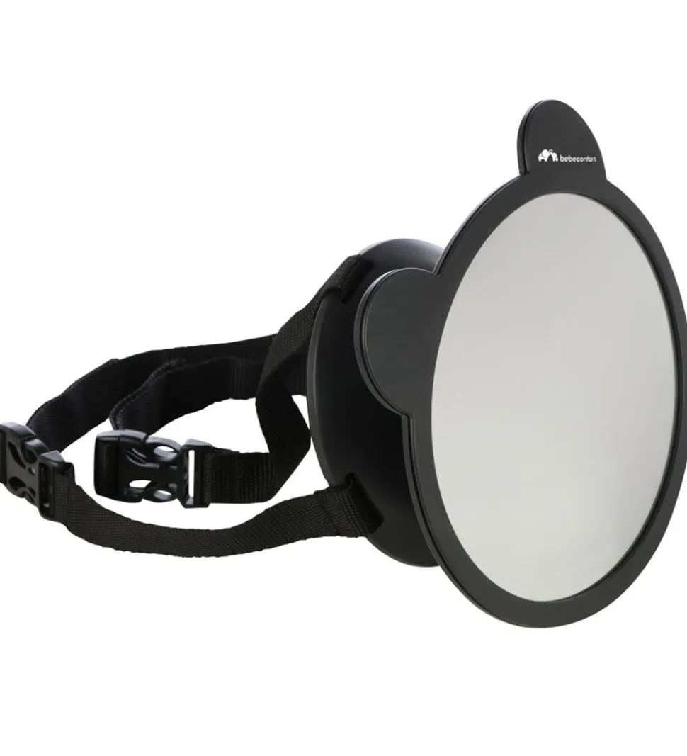 Bebeconfort babyspejlet er rundt, og det buer udad, så giver et godt udsyn. Spejlet kan drejes, så man bedst muligt kan se barnet i autostolen. Spejlet monteres på en nakkestøtte med to remme med klikspænder. Så kan du let holde øje med dit barn i en bagudvendt autostol på bagsædet.