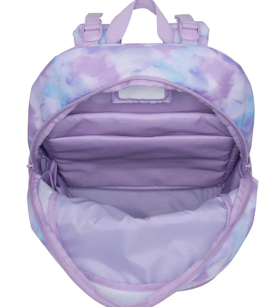 Smart Beckmann skoletaske med tie dye i rosa og lyseblå og med en en logopatch i toppen.