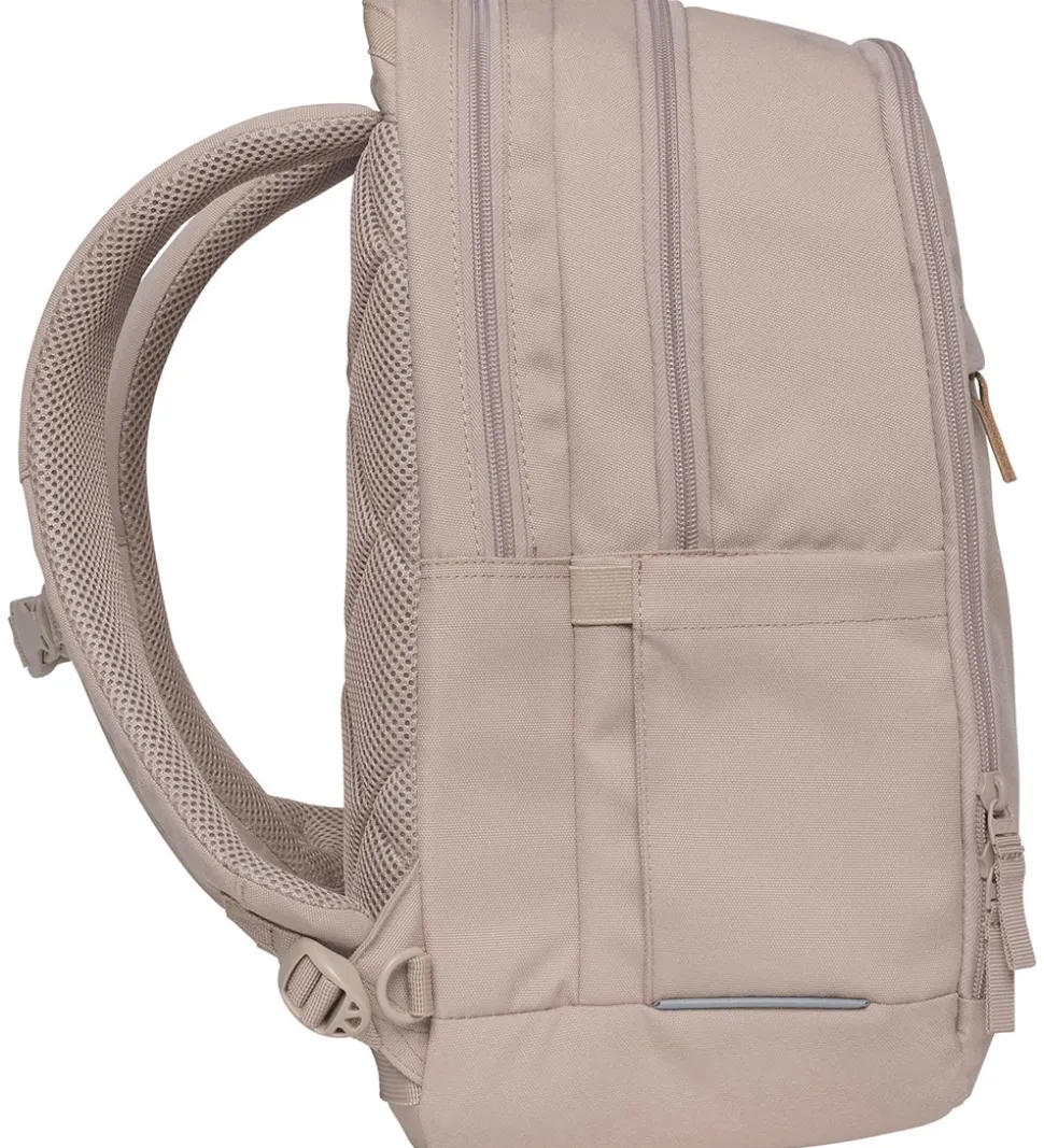 Tasken har en vatteret ryg, og der er brede, vatterede skulderremme, der kan justeres i længden. Tasken har et justerbart brystspænde. Skulderstropperne og ryggen har åndbart mesh på bagsiden.