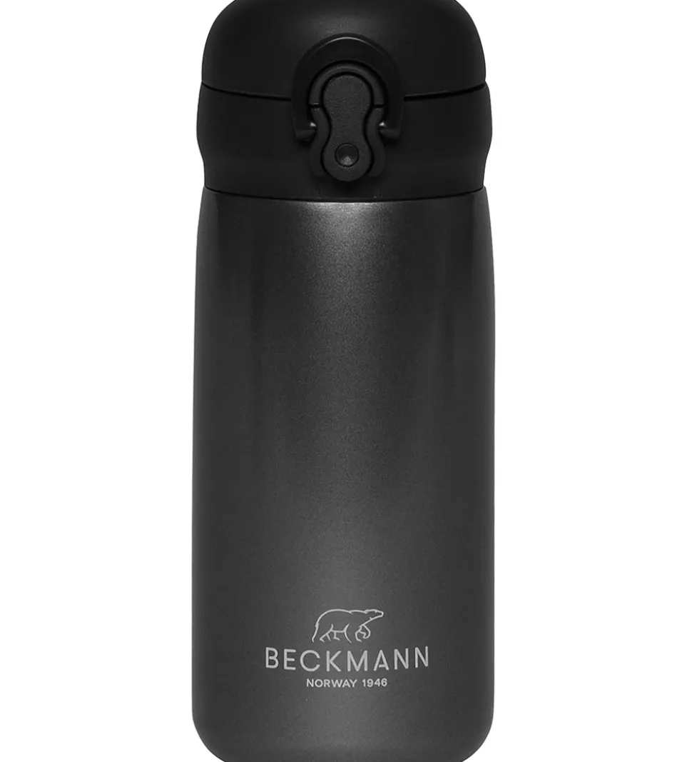 Beckmann termoflasken har et funktionelt kliklåg i PP med silikoneforsegling, som sørger for at holde flasken tæt, og der kan drikkes direkte fra tuden. Termoflasken er med dobbelt væg og kan indeholde både varme og kolde drikke (60°C/6 timer, 50°C/12 timer, 30°C/24 timer).