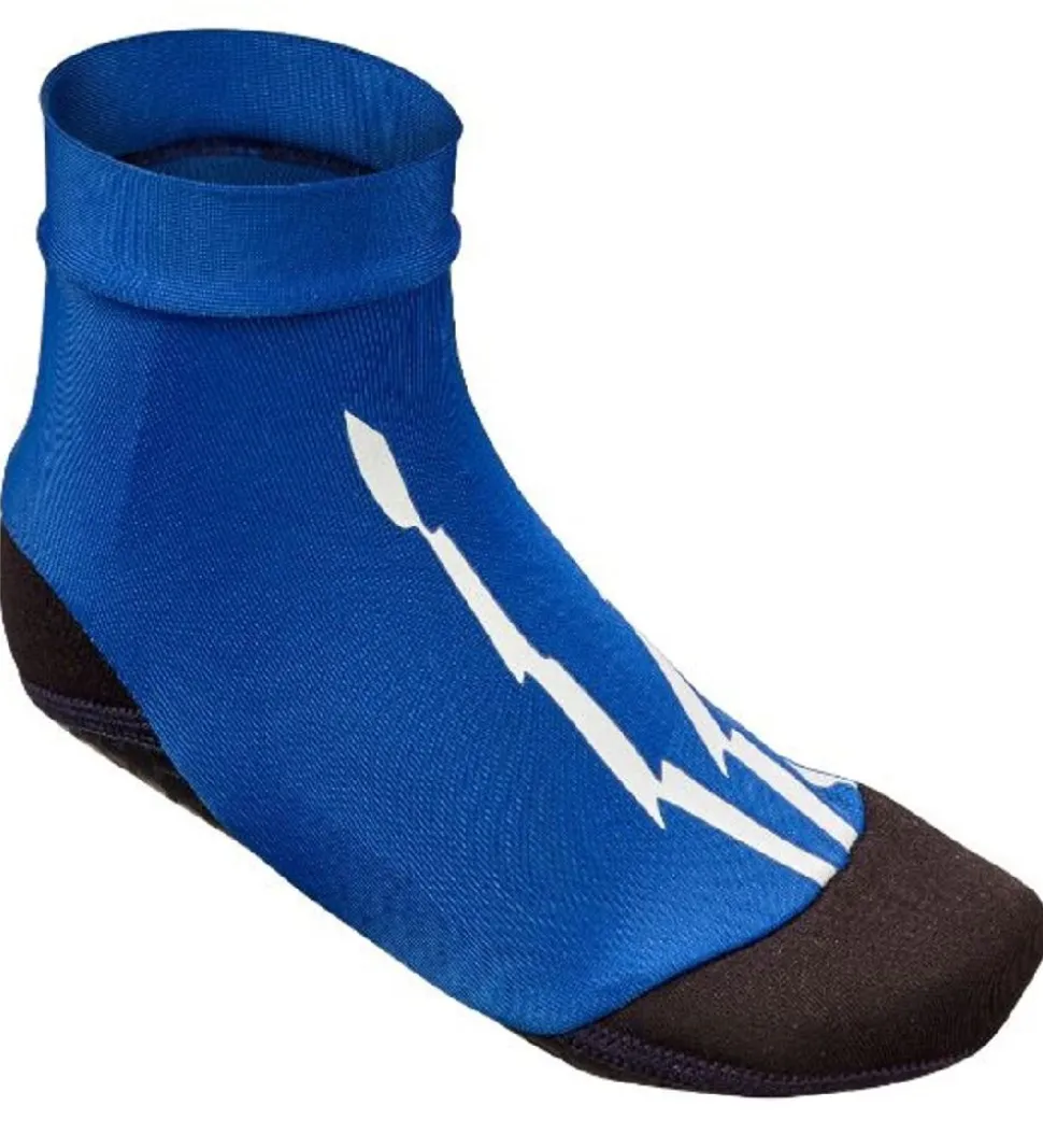 Smarte BECO badesokker i blå med et hvidt print fortil og med en sort bund, som går op over hælen og tæerne.
