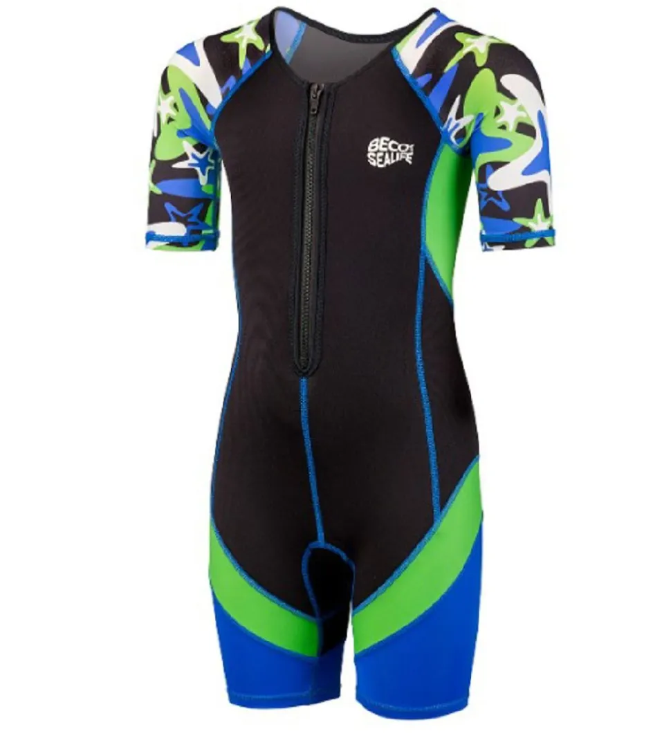 BECO våddragten har korte ærmer og korte ben. Våddragten åbnes med en praktisk lynlås med indvendig vindstolpe på fronten. Våddragten har et praktisk UV-filter på 50+, så barnet er godt beskyttet mod solens skadelige UV-stråler.