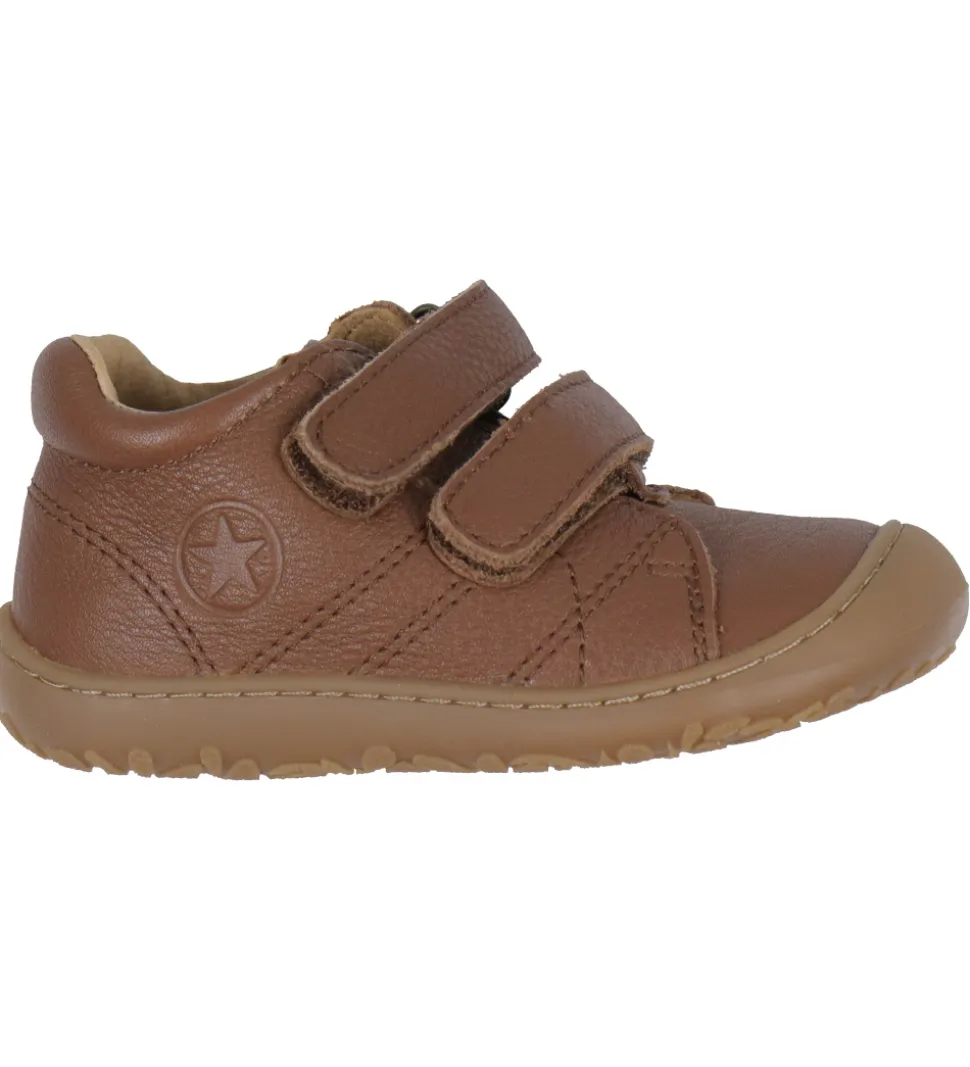 Søde Bisgaard begyndersko i brun skind og på ydersiden er en stjerne præget ind i skindet.