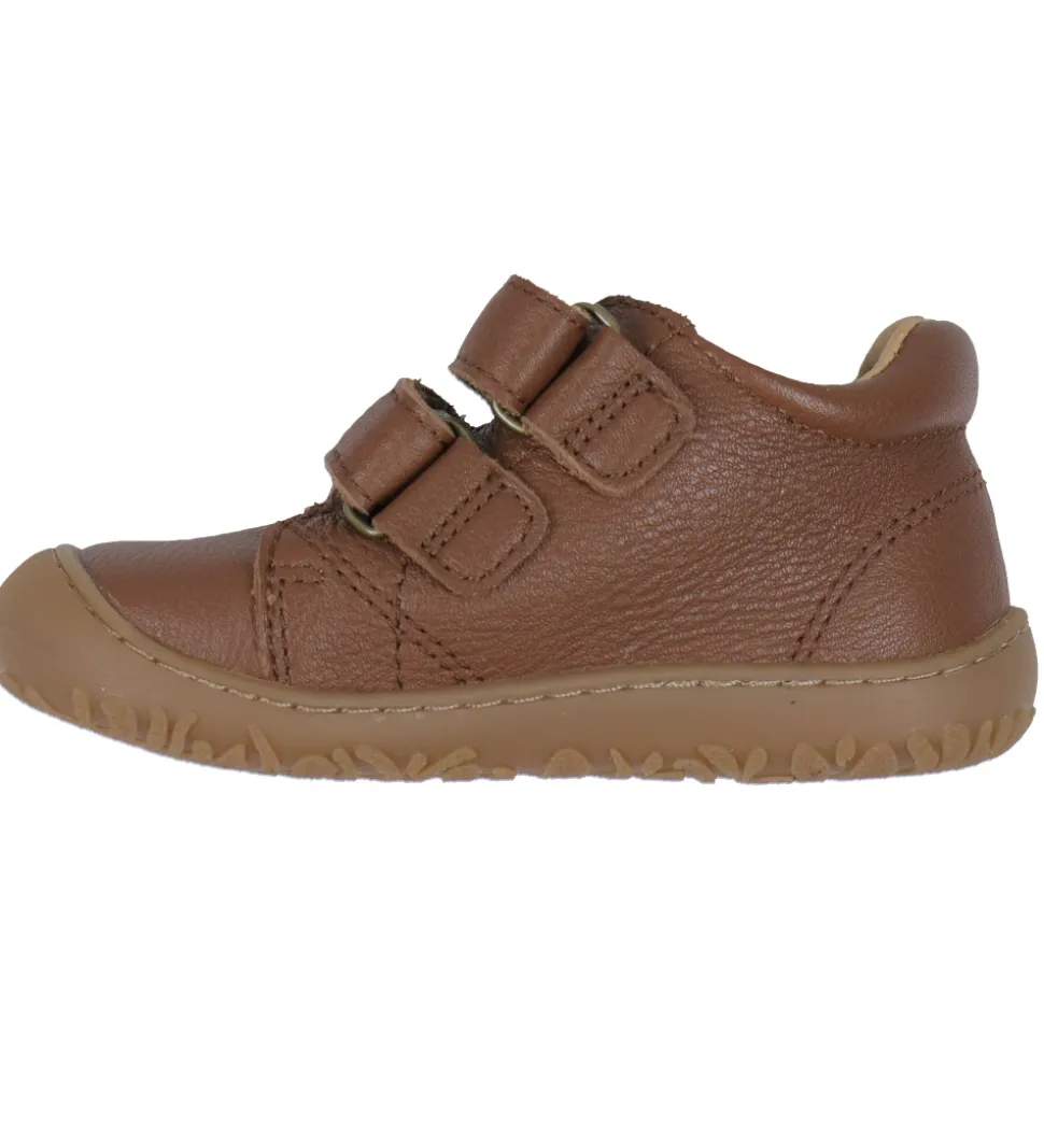 Begynderskoene har en ydersål i brun gummi som går godt op over snuden og hælen, så de er godt beskyttet mod slid. Under bunden er der et praktisk mønster, som sikrer et godt fodfæste.