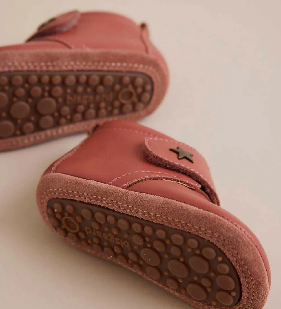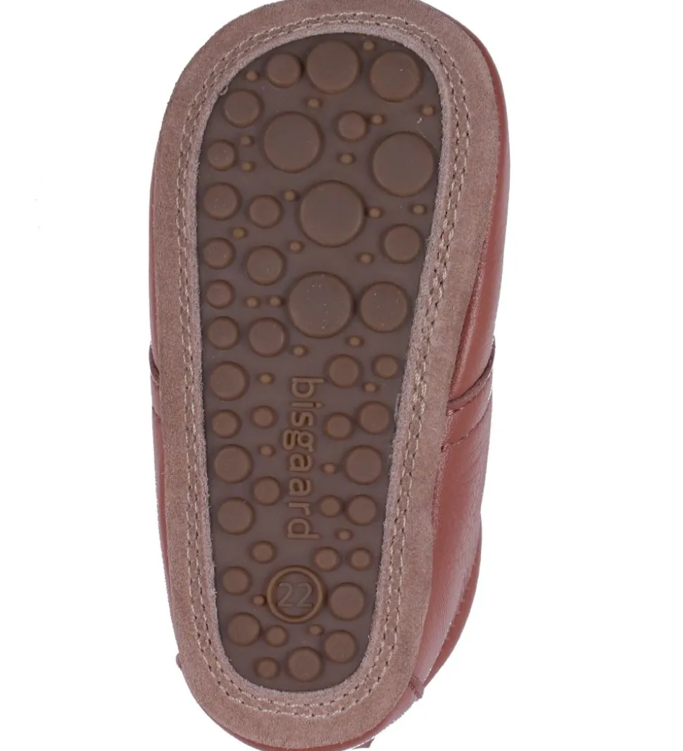 Bisgaard hjemmeskoene har en lækker ruskindssål med gummiareal, der øger fodfæstet. Indvendigt har skindfutterne en lækker læderforing, som vil forme sig efter barnets fod ved kortvarigt brug.