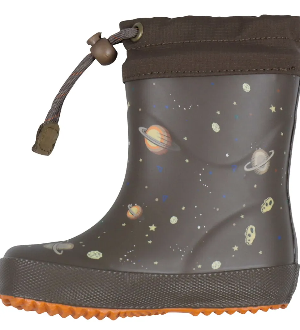 Seje Bisgaard termostøvler i brun med print af planeter og stjerner.