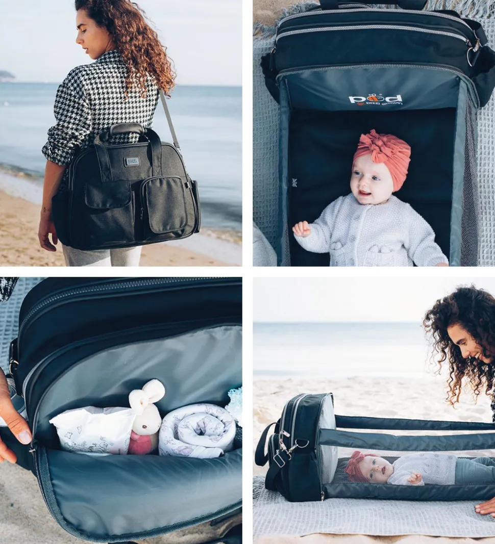 Den kombinerede pusletaske og rejseseng er den perfekte løsning for travle småbørnforældre på farten.