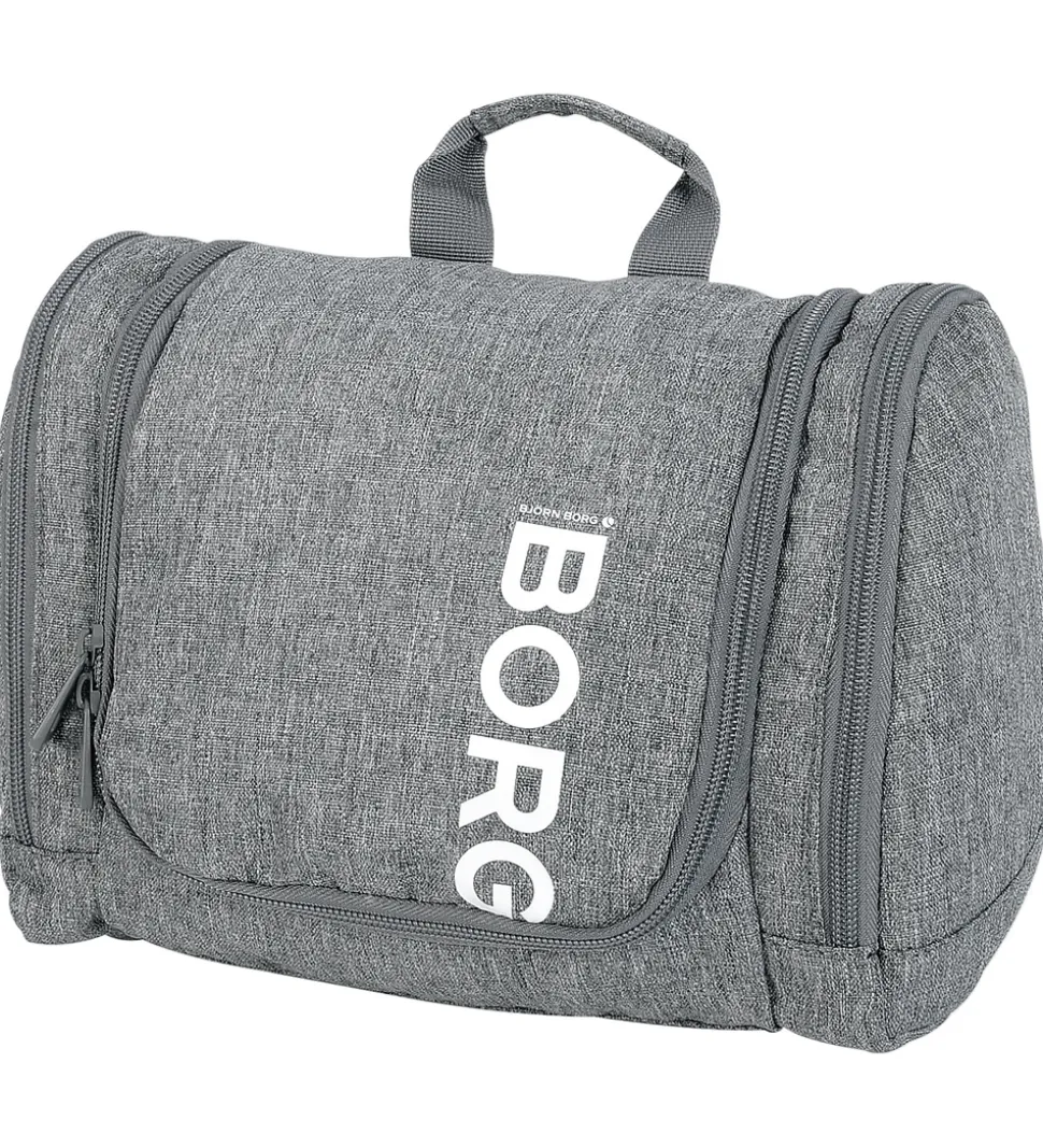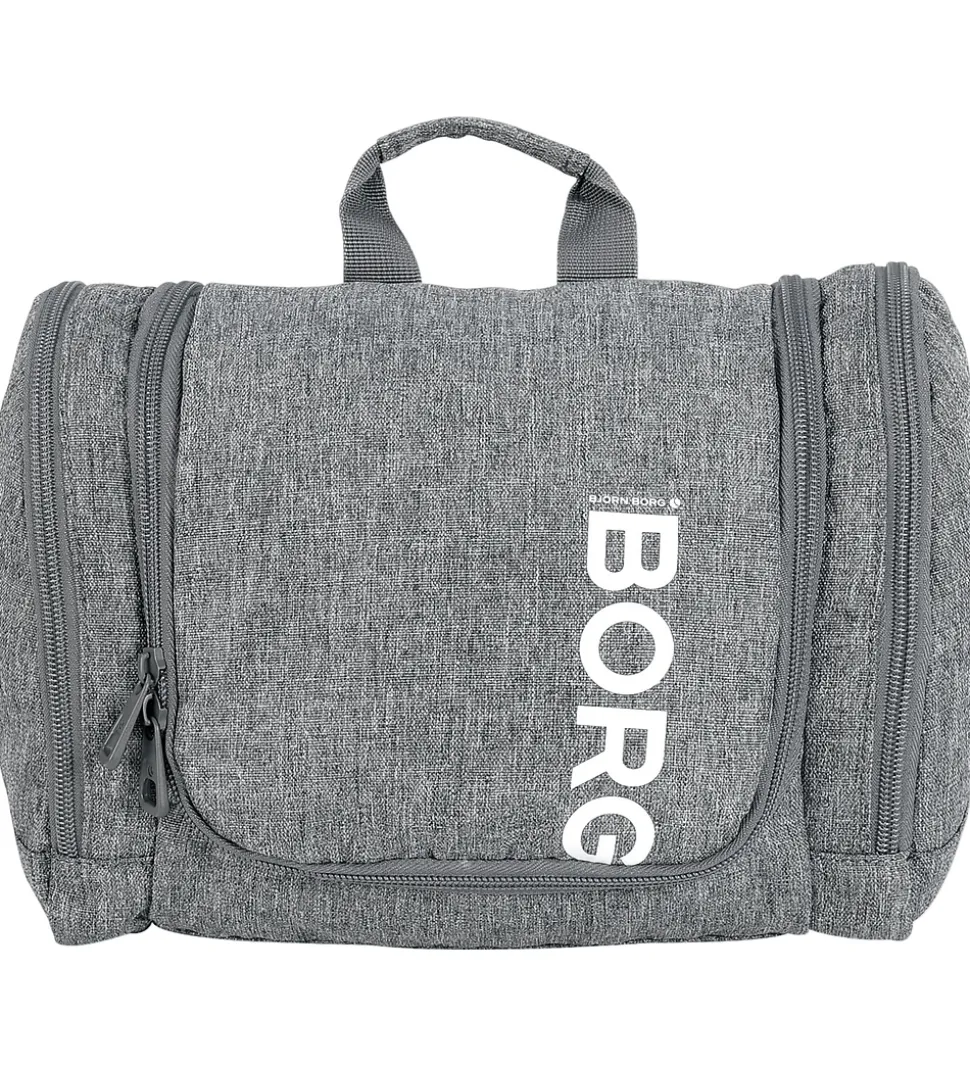 Smart Björn Borg toilettaske i gråmeleret med et hvidt logoprint.