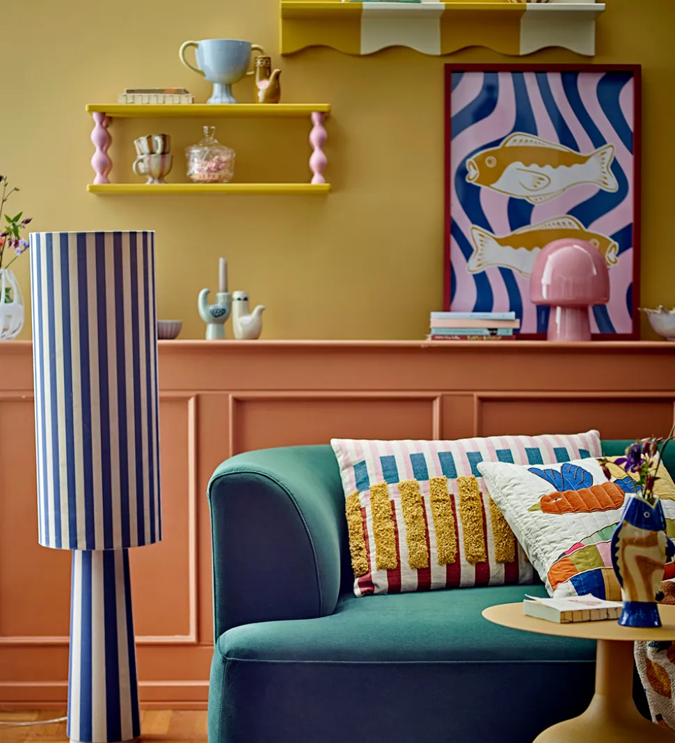 Stilfuld Bloomingville hylde i et flot, bølget design med skiftevis gule og hvide felter. Bloomingville hylden kombinerer praktisk opbevaring med moderne æstetik, der passer perfekt ind i ethvert hjem.