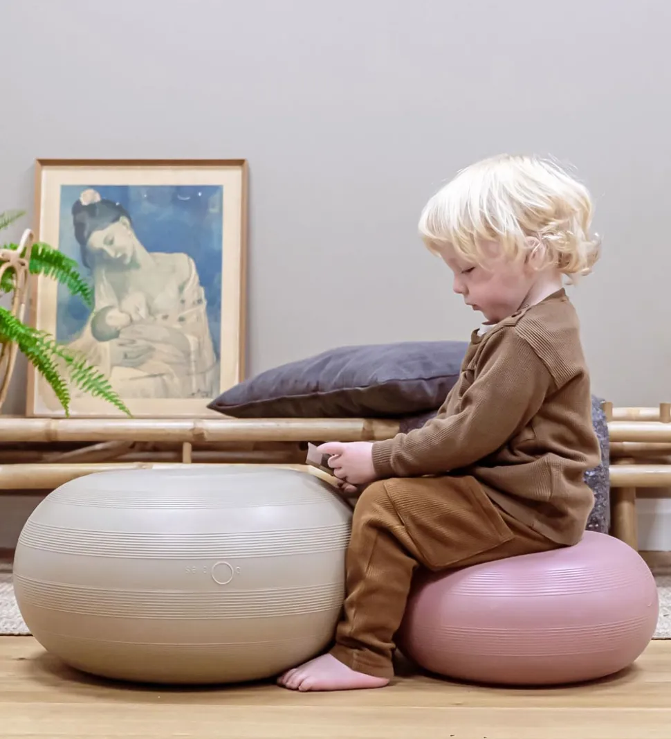 Hvis man trykker donutten ned mod gulvet, opstår der et vacuum, så den sætter sig fast. Så har man en sjov og stabil pude, der fungerer som afsæt til masser af tumleleg. Det er kun fantasien, der sætter grænser.