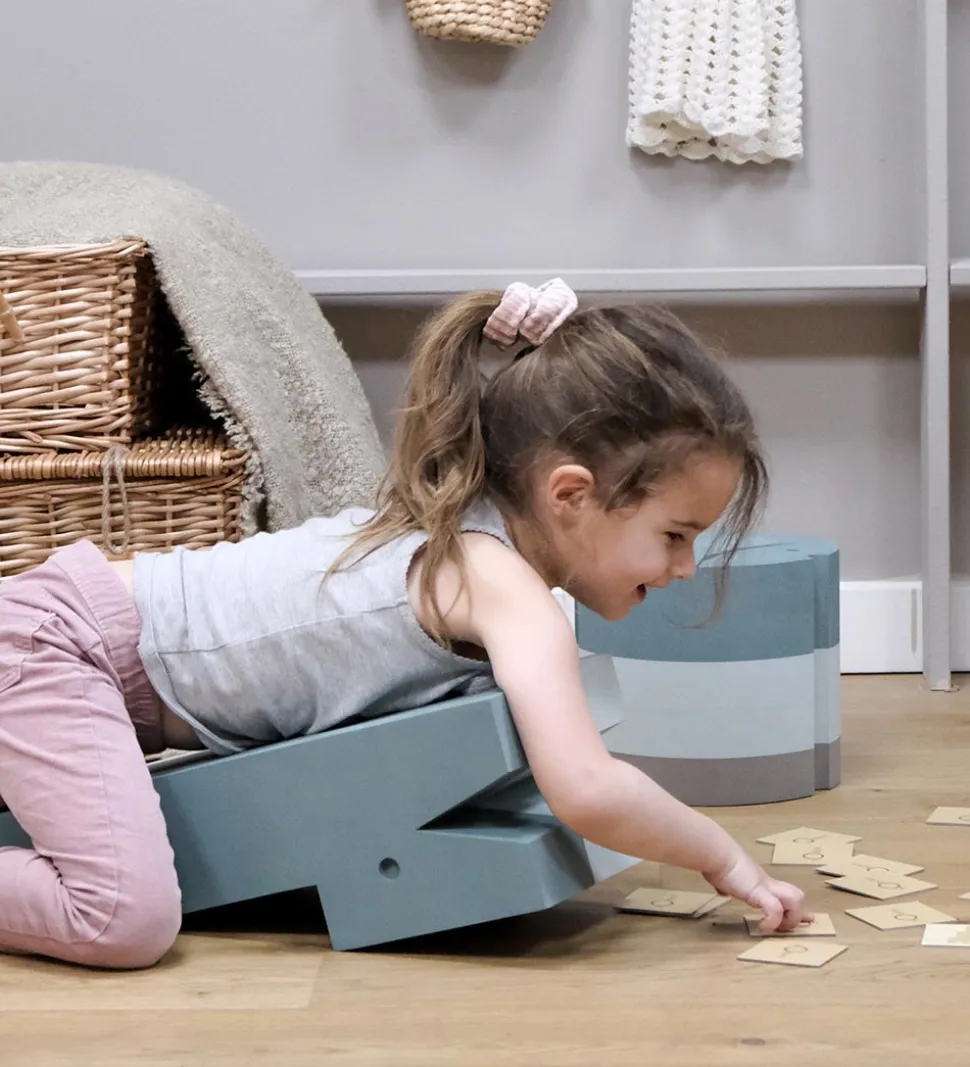 Krokodillen udfordrer sanserne hos små og store børn. Her kan det lille barn øve sig i at gå op ad trapper, hoppe ud fra forskellige højder fra krokodillens skrå ryg eller forsøge at holde balancen, når krokodillen bliver vent på hovedet.