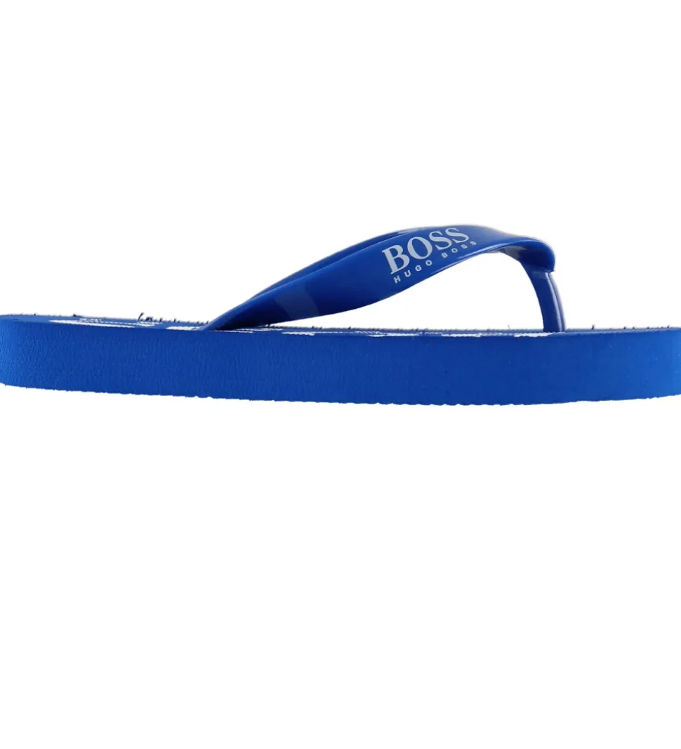 Flotte BOSS klipklapper i blå med blå gummistropper og et hvidt logo-print på sålen.