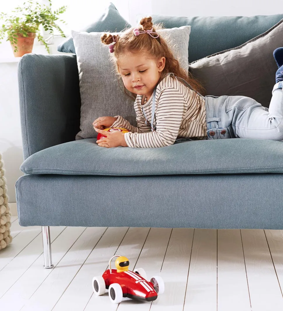 Racerbilen er baseret på den ikoniske BRIO racerbil og lærer børn det basale om årsag/virkning.