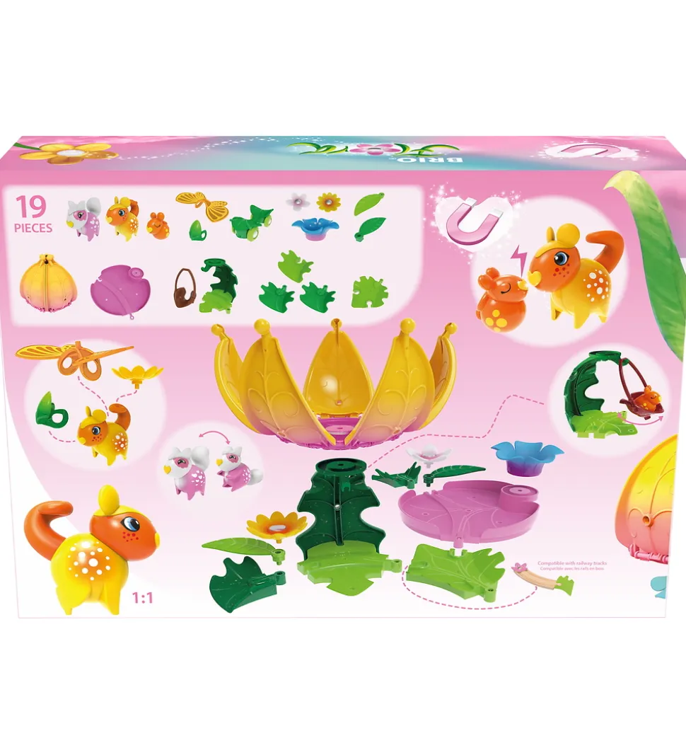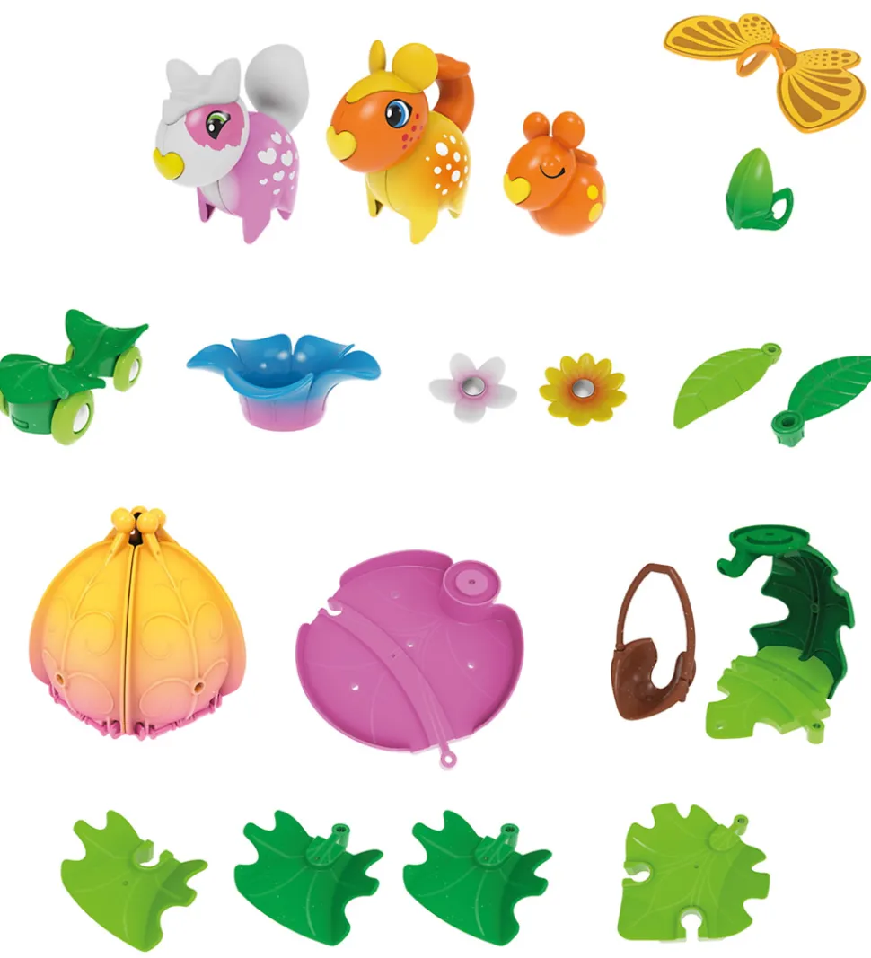 Det fortryllende blomsterhus indeholder 19 dele, heribland de sødeste nye venner i friske farver, alle med sjove funktioner som skjulte magneter, der gør det muligt for figurerne at interagere med hinanden og deres omgivelser.