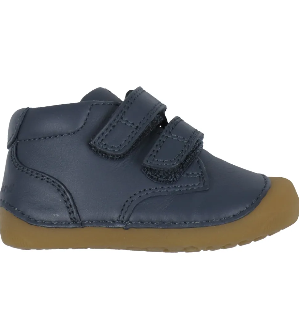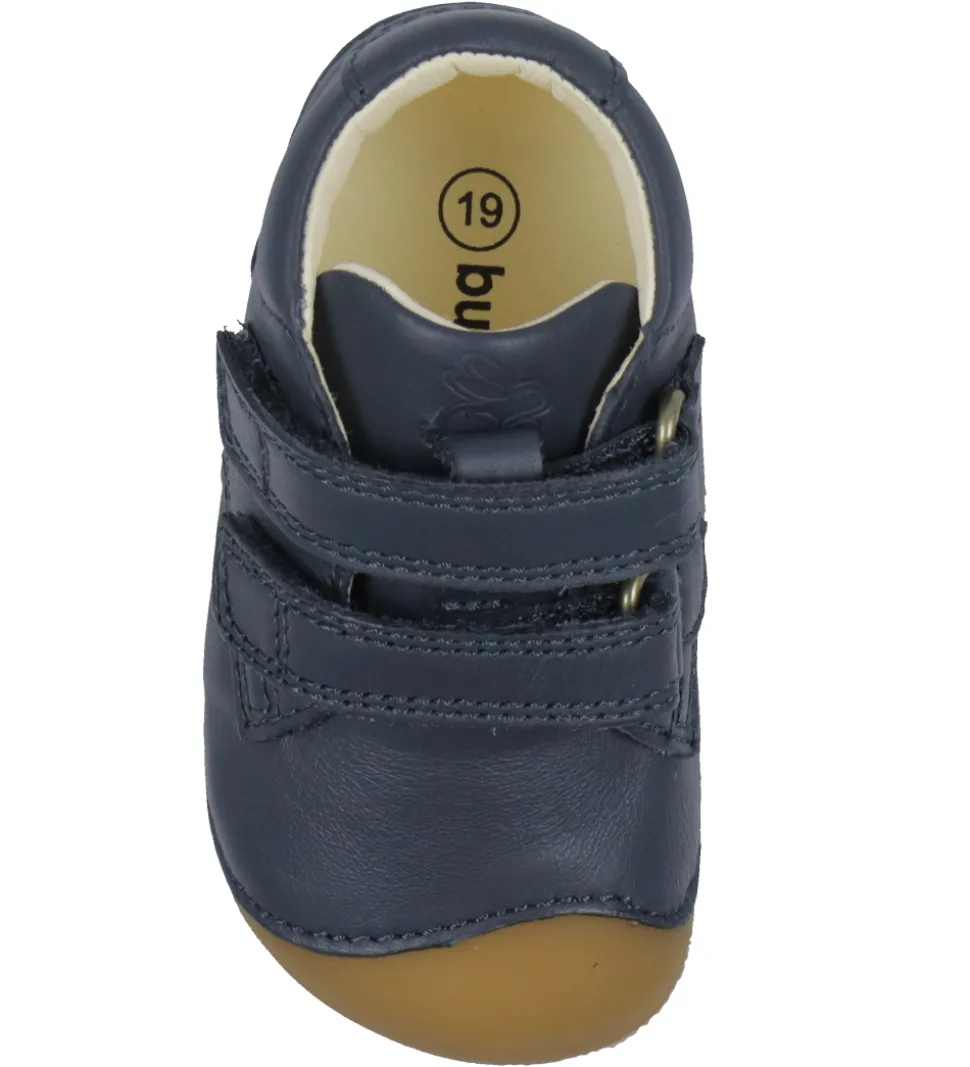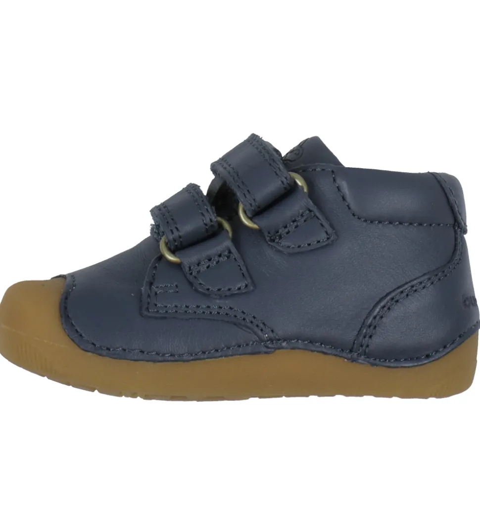 Smarte Bundgaard begyndersko i mørkeblå læder med en brun ydersål.