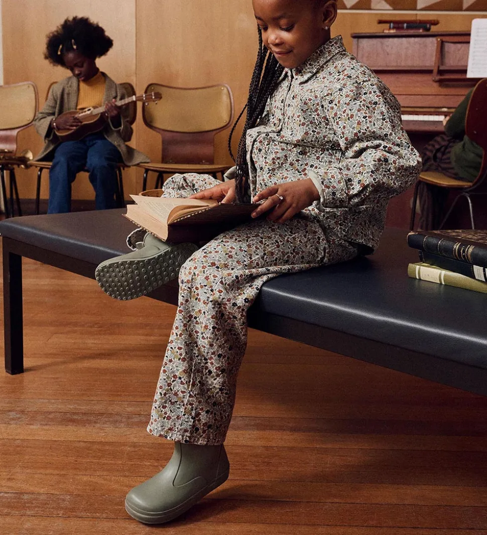 Gummistøvlerne er en barfodsmodel, som betyder, at de har bløde og fleksible ydersåler uden hældrop, som fremmer en naturlig gang og forbedrer balancen og ankelstabiliteten. De bløde ydersåler giver god kontakt med underlaget, og under bunden er der et skridmønster, som sikrer et godt fodfæste.