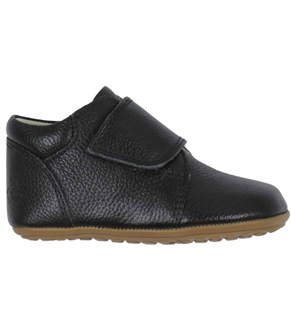 Bundgaard skindfutterne lukkes med en bred velcrorem over vristen. Indvendigt er de foret med lyst læder og i bunden er der udtagelige indersåler i læder. Ydersålen er fremstillet i blødt og bevægeligt gummi, med et mønster under bunden, som sikrer et godt fodfæste indendørs.