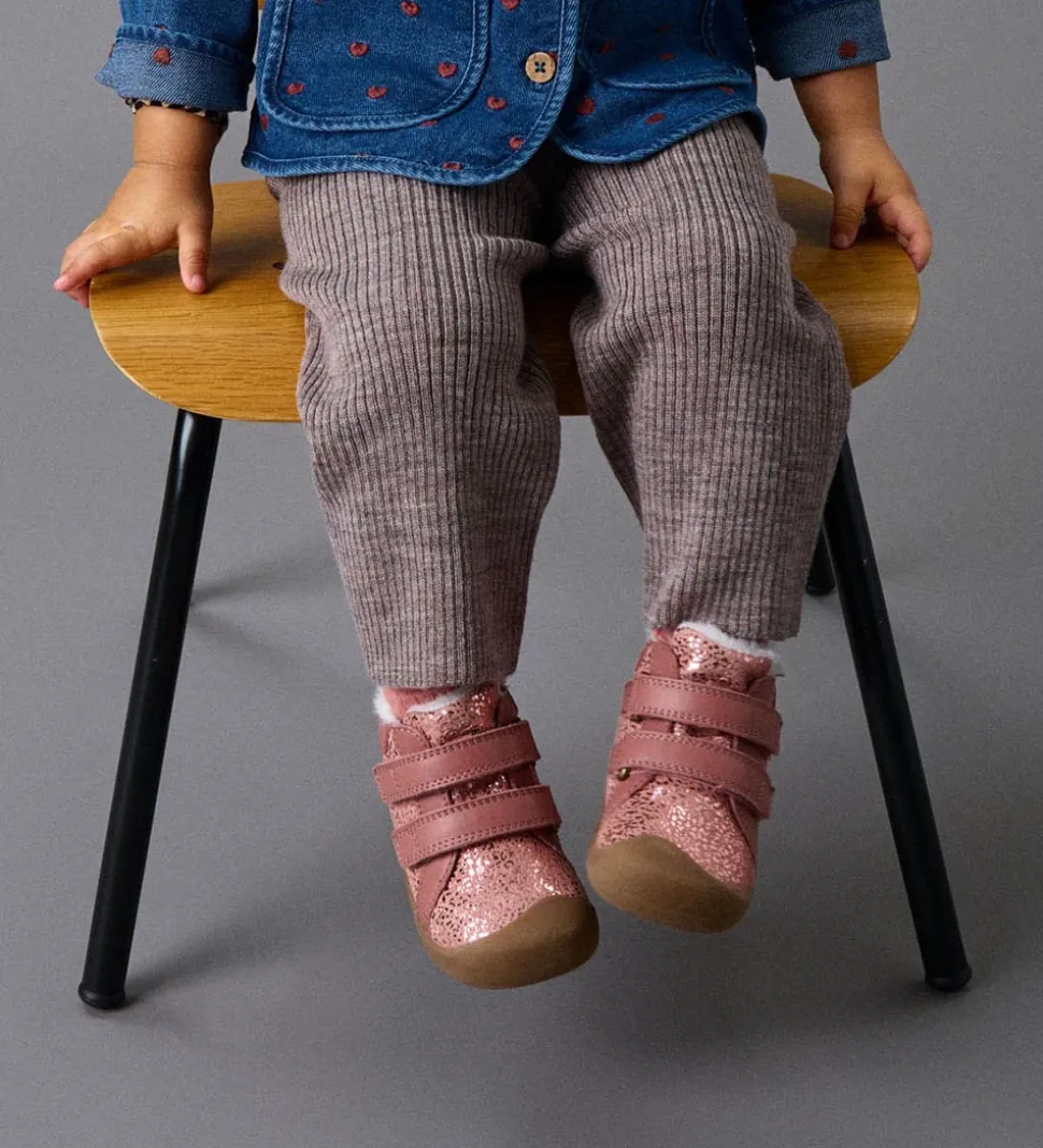 Søde Bundgaard vinterstøvler i lyserosa skind med metalliske- og ruskindsdetaljer.