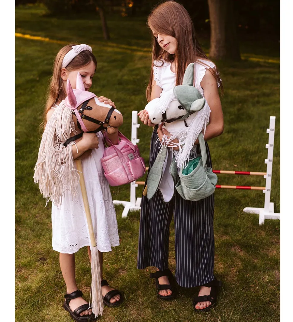 Der medfølger en smart rygsæk i gråt fløjl, som kæphesten kan transporteres i med kæppen stikkende uden for. Rygsækken er også med stiklomme og bærehank.