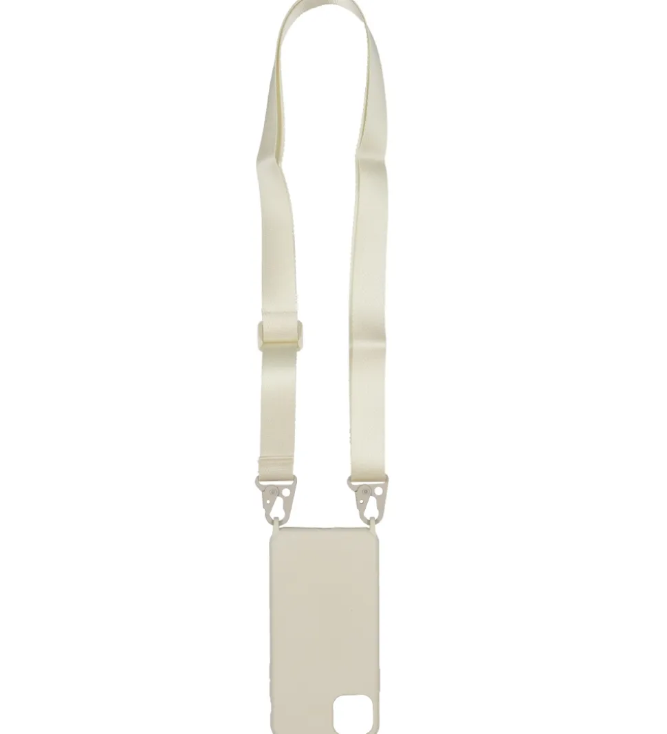 Fint By Stær mobilcover til en iPhone 11 Pro Max i ensfarvet råhvid med dertilhørende rem i samme farve.