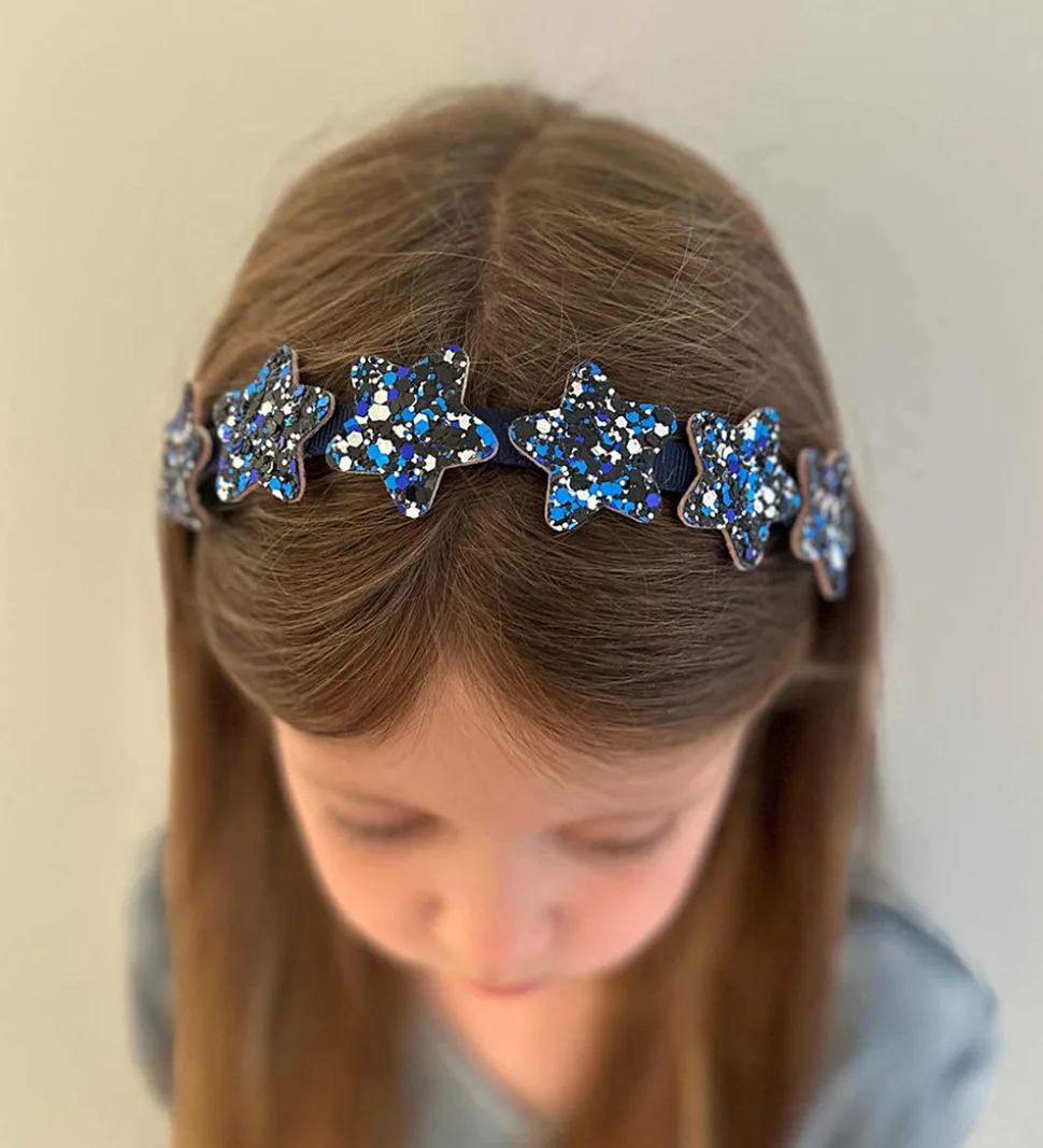 Elegant By Stær hårbøjle i mørk navy med glitrende stjerner på fronten.