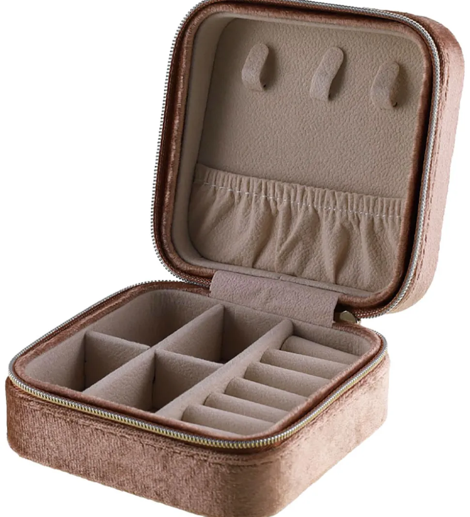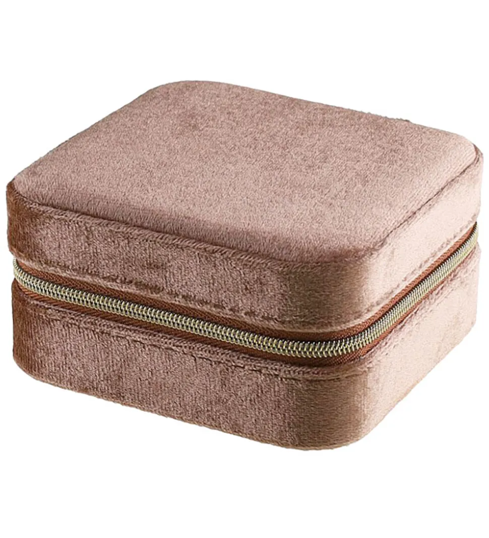 Praktisk By Stær smykkeæske i mørk rosa velour, med en firkantet form.