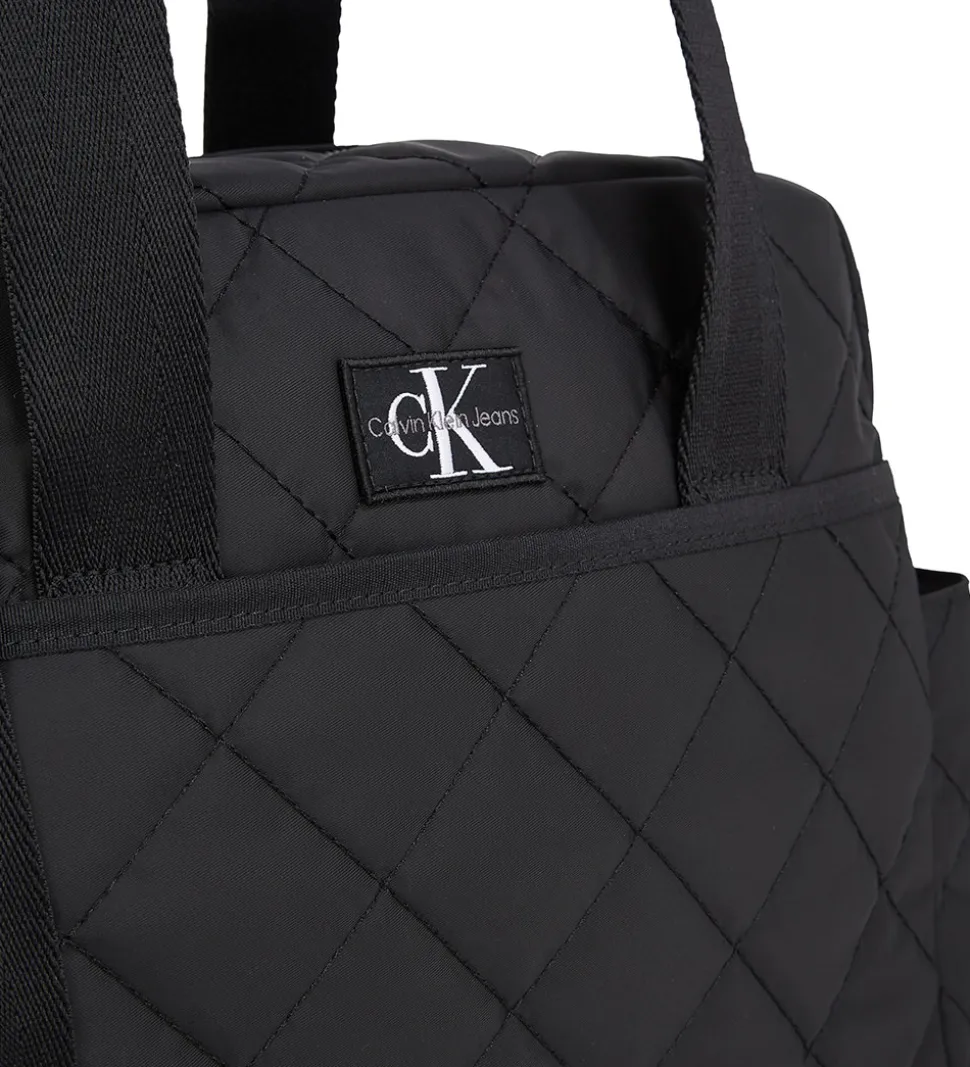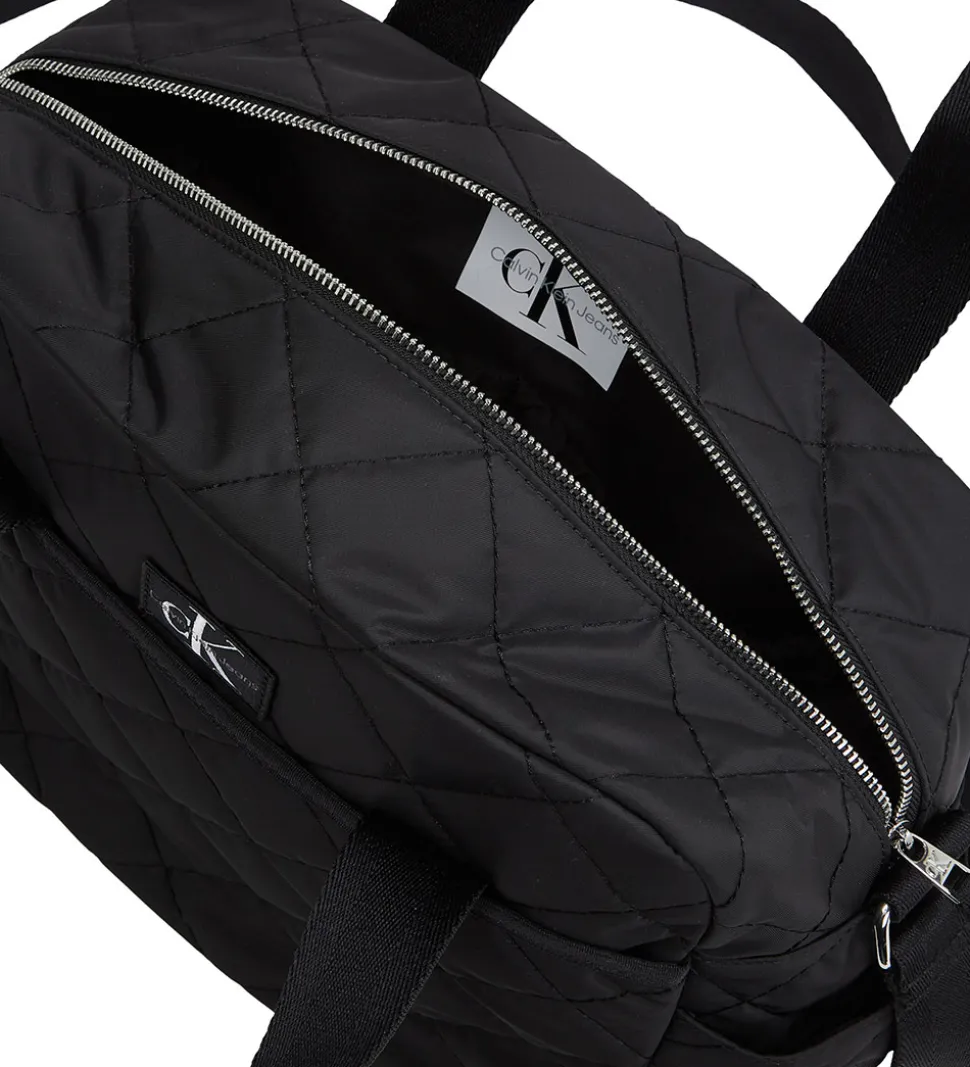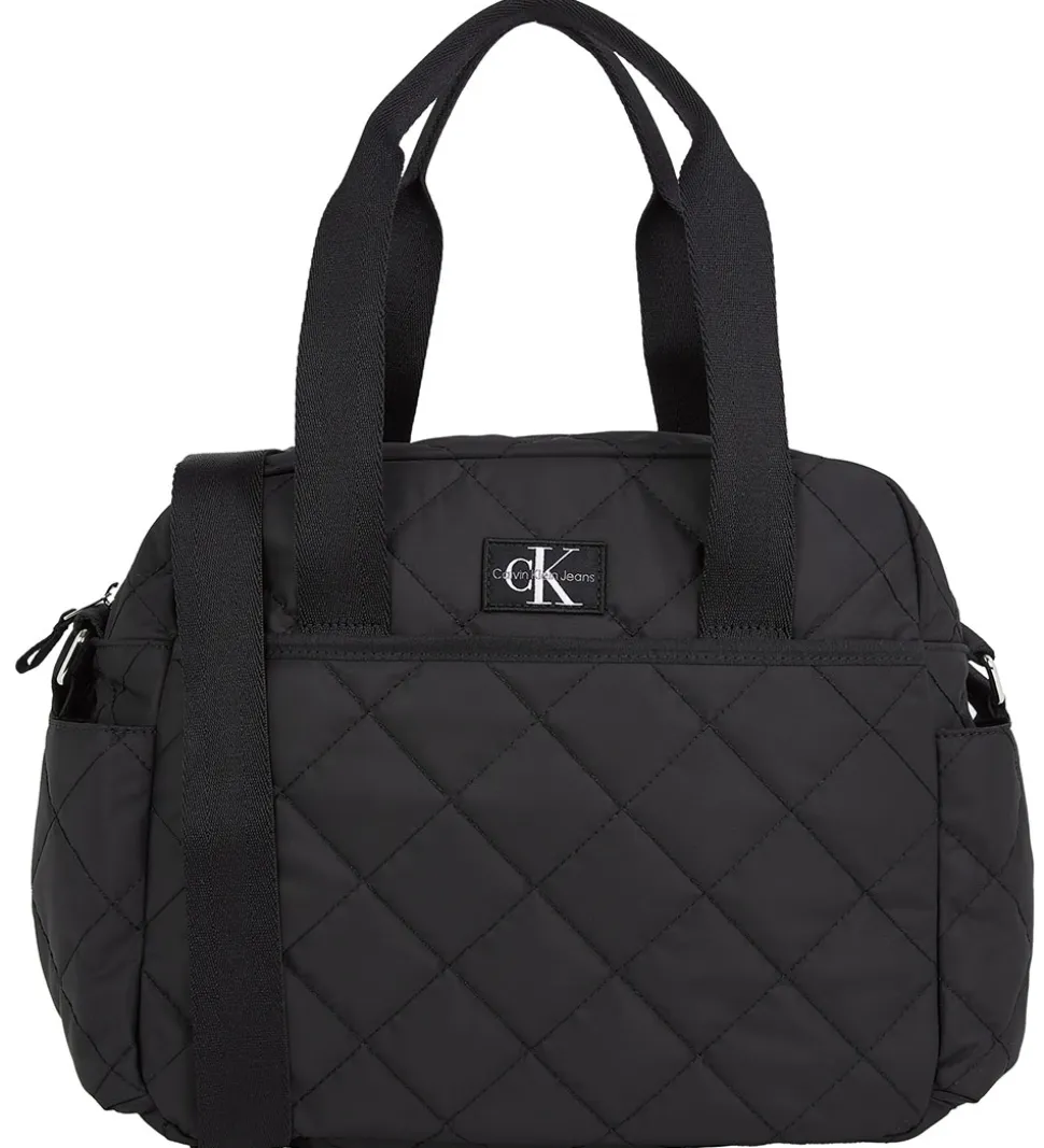 Smart Calvin Klein pusletaske i sort med en quiltet struktur og med en logopatch fortil.