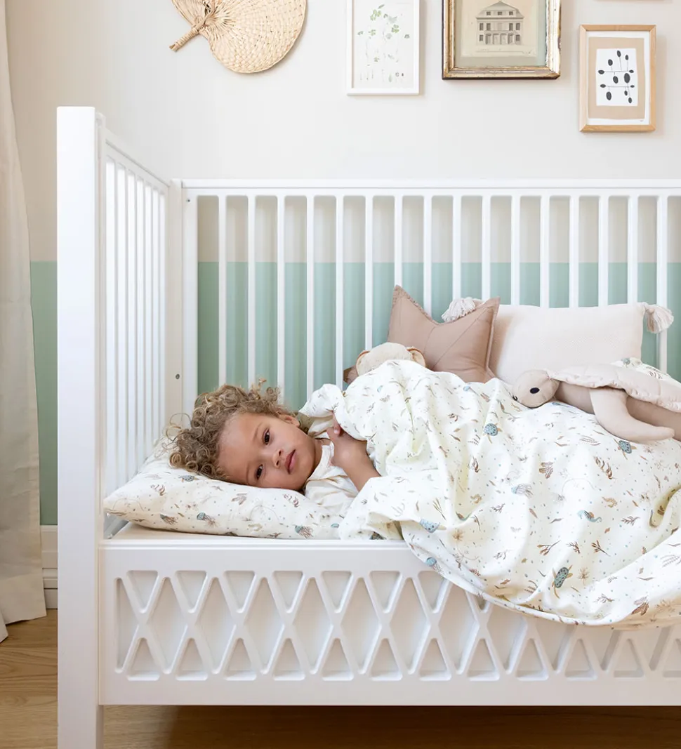 Cam Cam Copenhagen tremmesengen har en bund, der kan indstilles i 3 forskellige højder, så sengen passer til både barn og forældre. Den ene side på babysengen kan tages helt af ved hjælp aflåsmekanisme, så er det let at skifte lagen, og sengen kan nemt forvandles til en lille sofa i hyggekrogen eller børneværelset.