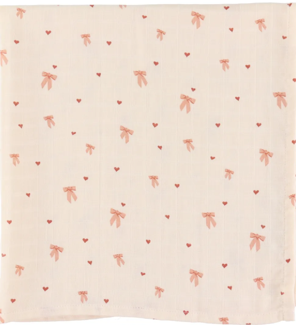 Dejligt Cam Cam Copenhagen babysvøb i lys rosa musselin med et alloverprint af rosa sløjfer og hjerter.