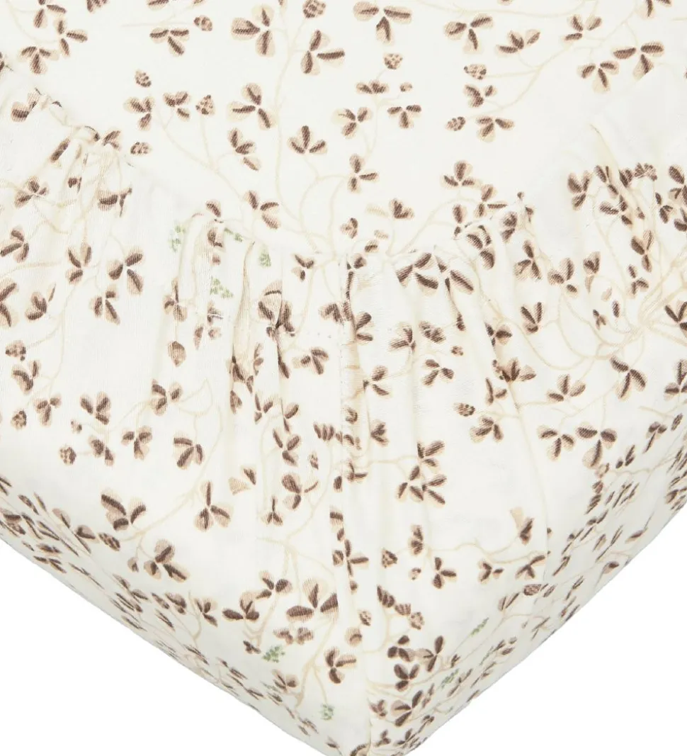 Skønt Cam Cam Copenhagen puslepudebetræk i hvid, med print af blomster i brune nuancer.
